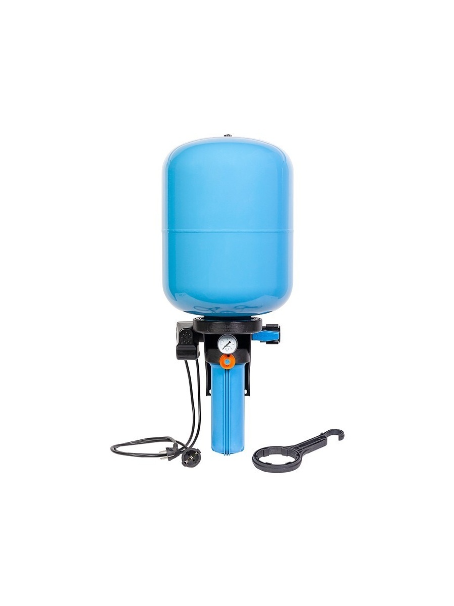 Предназначен для поддержания заданного давления в системах водоснабжения с предварительной фильтрацией воды. Легкий и удобный монтаж. Не требует дополнительной настройки. Автоматическое управление включением/выключением электронасоса. Полный комплект для автоматизации системы водоснабжения. Предварительная фильтрация воды. Календарь смены картриджей фильтра. Вся система устойчива к коррозии. Позволяют подключаться в любом удобном месте магистрали вне зависимости от направления потока воды. Объем бака 50 литров.