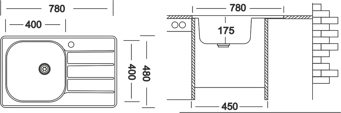 Толщина материала мойки, мм - 0.6