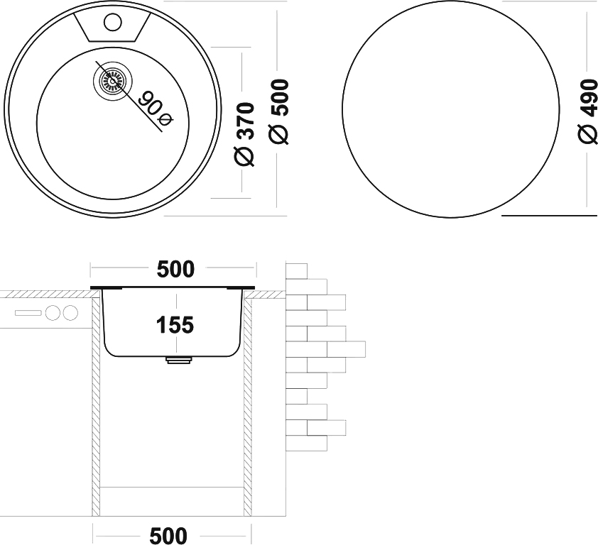 Толщина материала мойки, мм - 0.6