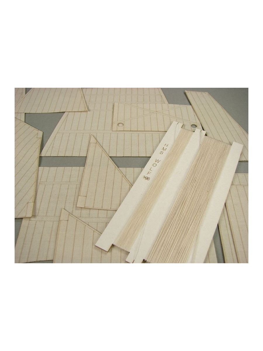 Комплект из 18 готовых парусов для бумажной модели HMS Wolf польской фирмы Shipyard. Масштаб 1:96, лазерная резка и гравировка. В комплекте с парусами идут необходимые для их установки нити. Инструкция по установке парусов и сопутствующего такелажа есть в самой бумажной модели.