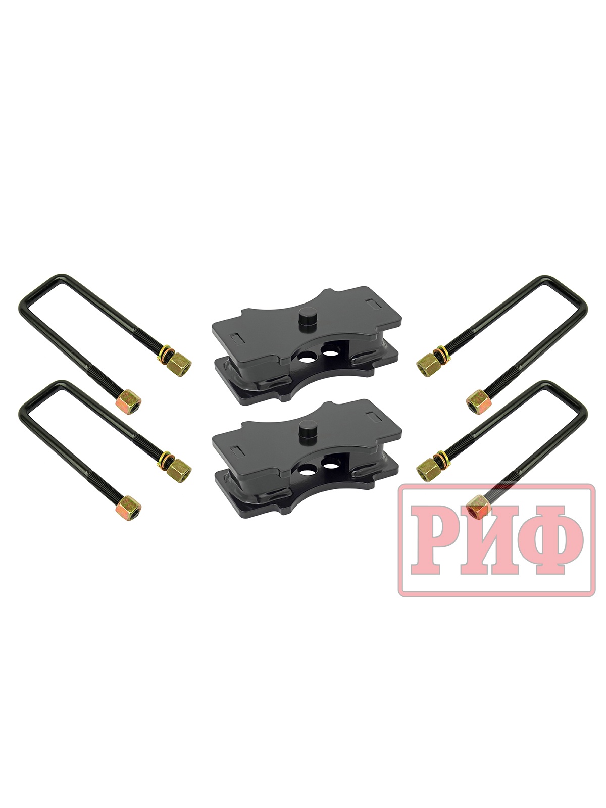 Комплект стремянок и проставок для лифта реесор на 30 мм. Подходит для рессор шириной 60 мм и диаметром стяжного болта не более 14 мм.