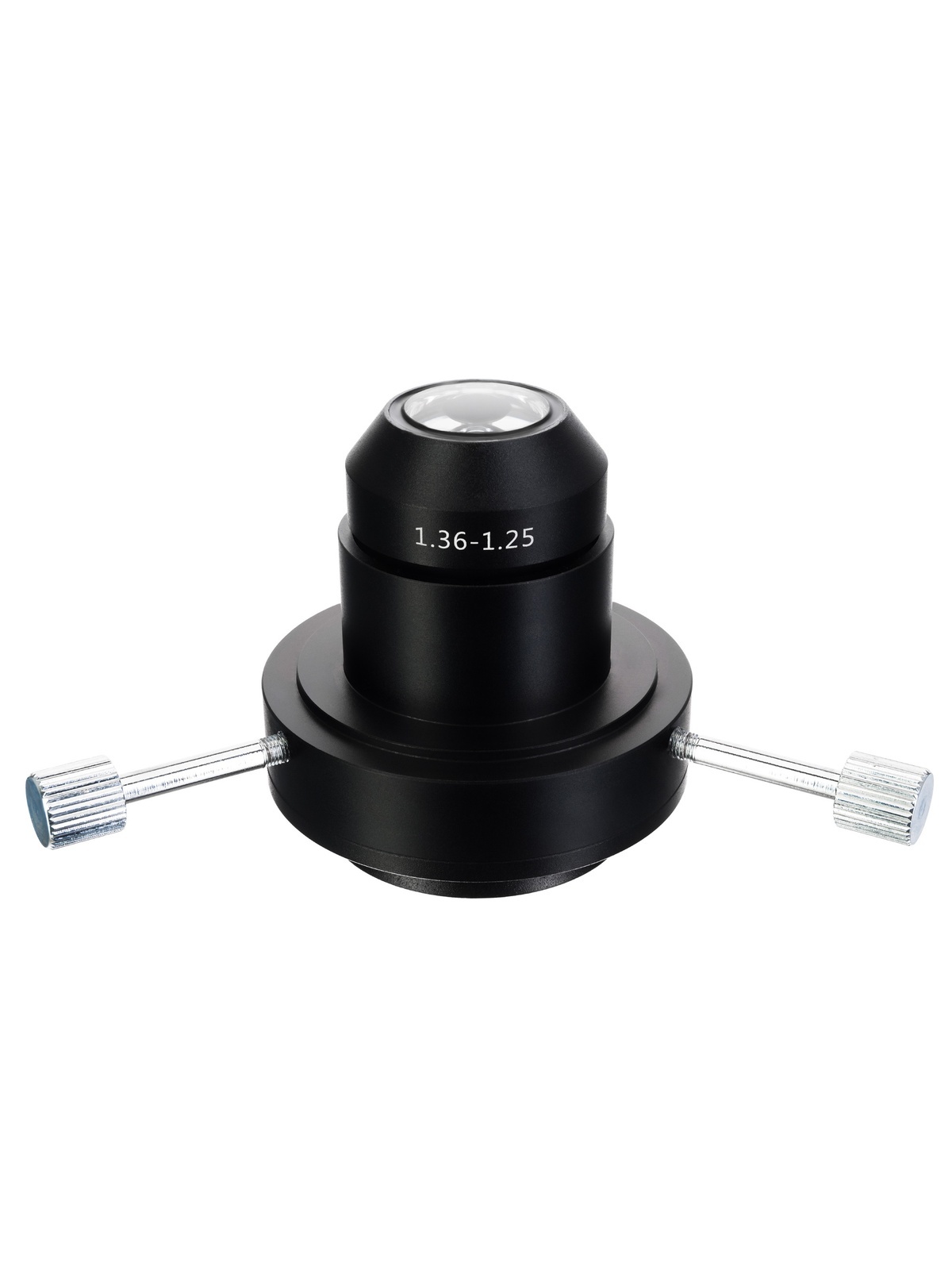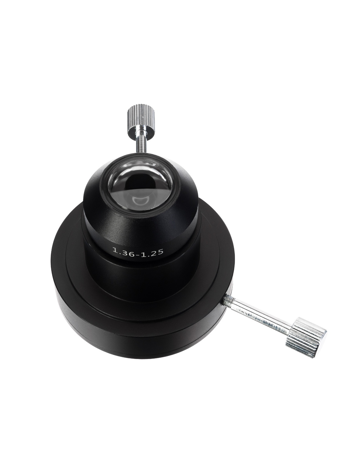 Этот конденсор темного поля можно устанавливать на микроскопы Levenhuk MED 30/35/40/45 на место штатного светлопольного конденсора. Также он может использоваться на других моделях микроскопов, если они имеют аналогичные параметры. Корпус конденсора сделан из алюминия, оптика - из стекла. Предназначен для работы только с масляно-иммерсионными объективами.