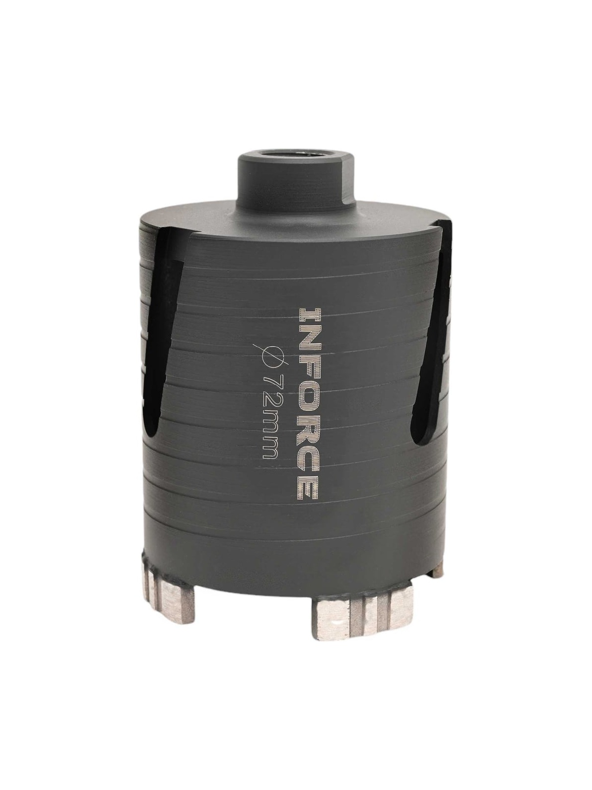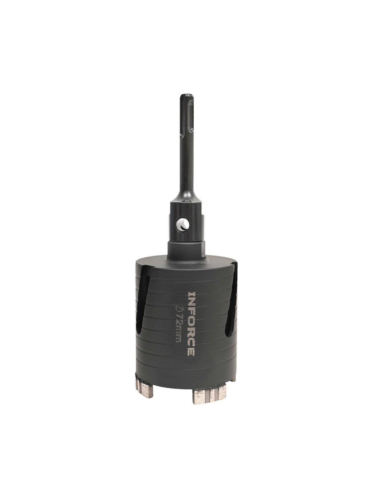 Коронка алмазная по бетону 72 мм Inforce 11-02-072 предназначена для высверливания отверстий с помощью перфоратора. Используется для создания отверстий в бетоне, кирпиче, мраморе. Особенности: для работы водяным охлаждением в безударном режиме. Хвостовик съемный, М16/SDS+. Технология производства: серебряная пайка