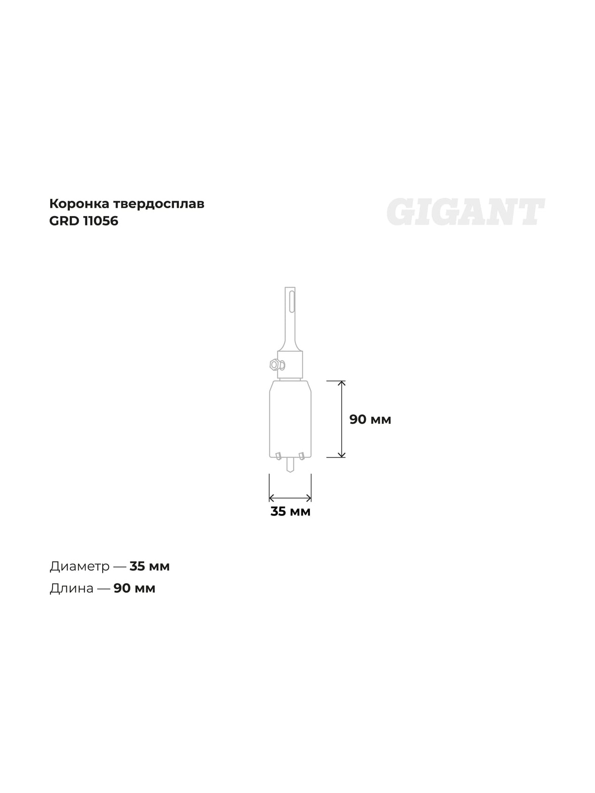 Коронка твердосплавная SDS Plus 35 мм Gigant GRD 11056 предназначена для эффективного сверления бетона и кирпича. Она оснащена хвостовиком типа SDS-plus, что обеспечивает надежное крепление и совместимость с большинством перфораторов. Диаметр коронки составляет 35 мм, что позволяет выполнять работы с высокой точностью. Общая длина изделия 180 мм, а рабочая длина 70 мм, что делает её удобной для различных задач. Коронка оснащена четырьмя твердосплавными напайками, что обеспечивает долговечность и устойчивость к износу.