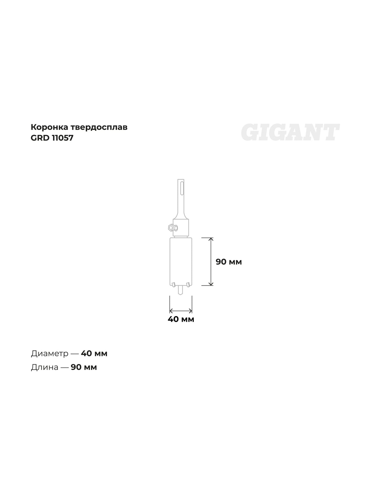 Коронка твердосплавная SDS Plus 40 мм Gigant GRD 11057 представляет собой надежный инструмент для выполнения сухого реза в бетоне и кирпиче. С диаметром 40 мм и общей длиной 180 мм, она обеспечивает точность и эффективность в работе. Рабочая длина 70 мм позволяет выполнять глубокие сверления, а наличие центрирующего сверла способствует точному началу сверления. Хвостовик SDS-plus обеспечивает надежное крепление и совместимость с большинством перфораторов.