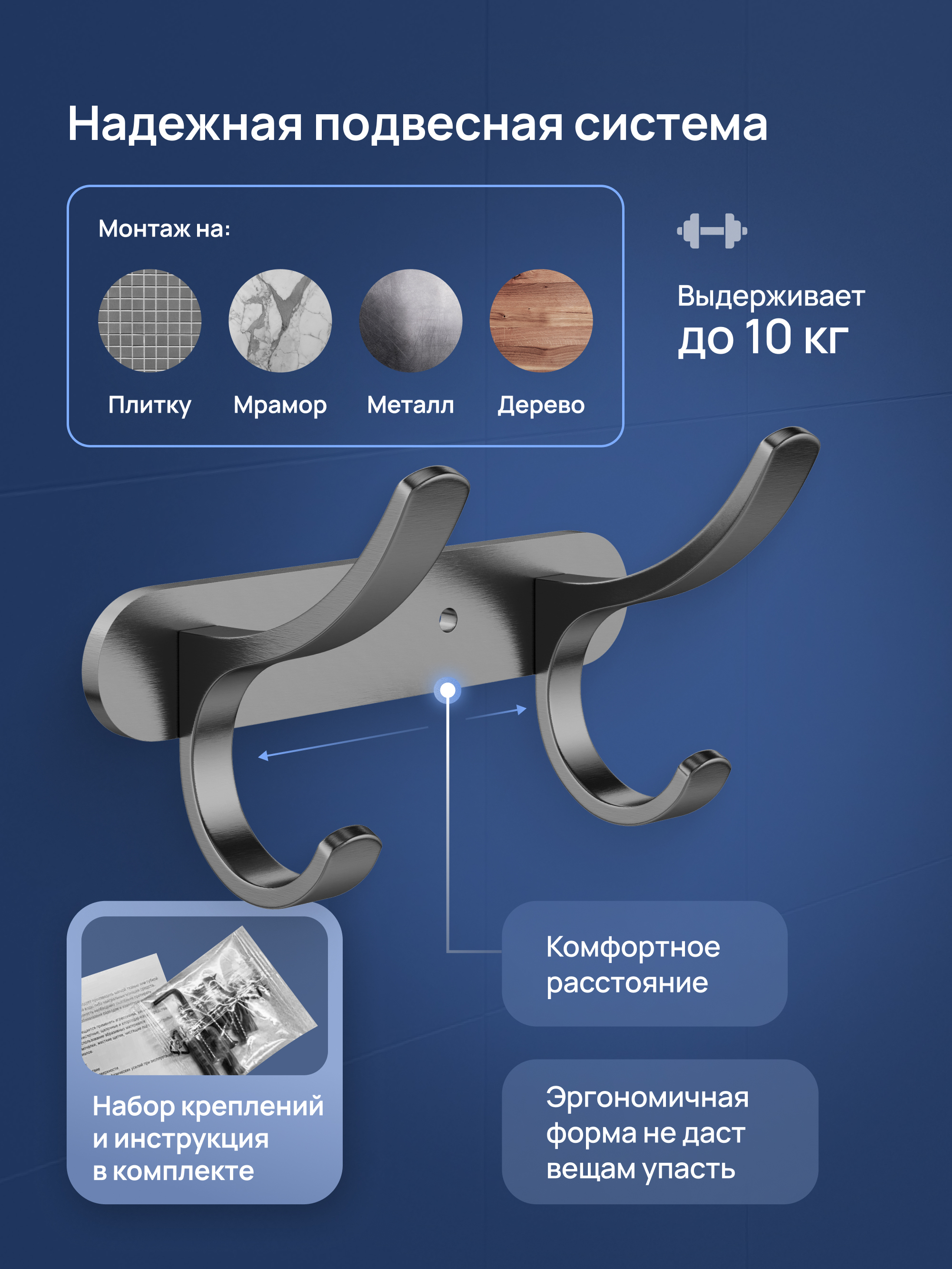 ВКоробке - Крючок - 1 шт; Набор креплений - 1 шт.