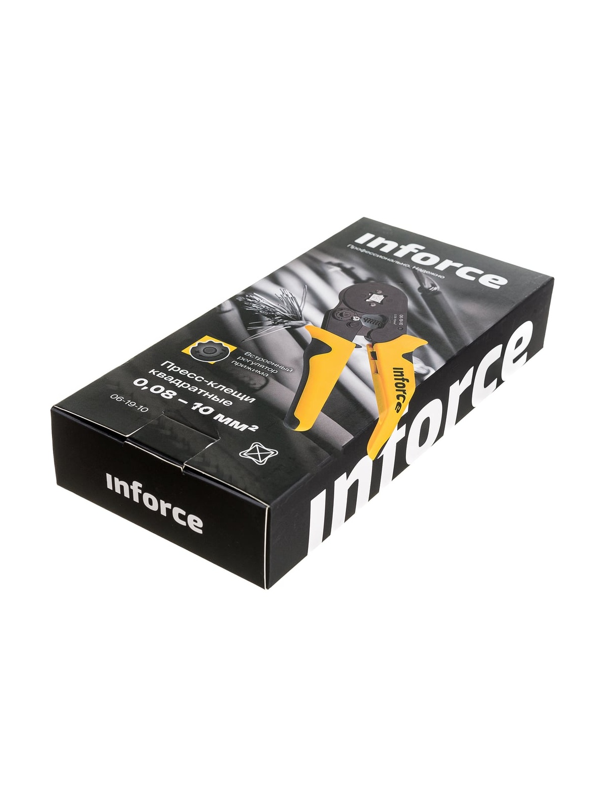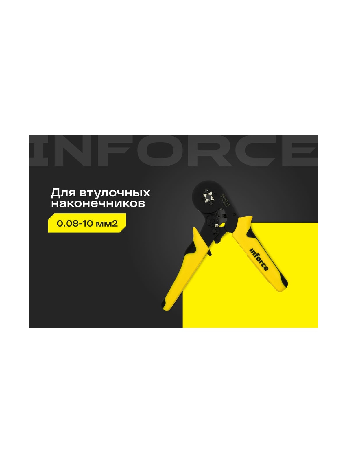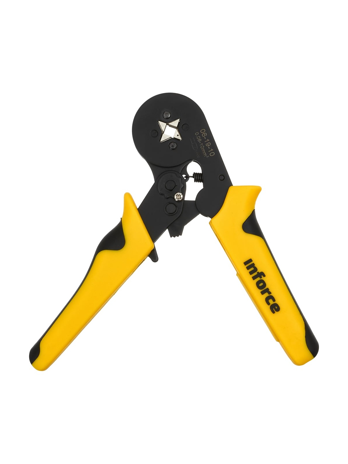 Квадратные пресс клещи Inforce 0.08-10 мм2 06-19-10 представляют собой удобный инструмент для обжима втулочных наконечников. Использование рычажной системы позволяет применять саморегулирующуюся матрицу. Имеют встроенный регулятор прижима. Изготовлены из высококачественной углеродистой стали с противокоррозийной обработкой. Имеют увеличенный срок эксплуатации. Удобные рукоятки с вставками из термопластрезины не скользят в ладонях. Нескользящие рукоятки Inforce 0.08-10 мм2 06-19-10 Квадратная матрица обжима с рифлением Одна саморегулирующаяся матрица на все типоразмеры диапазона Работа с наконечниками 0,08 – 10 мм²
