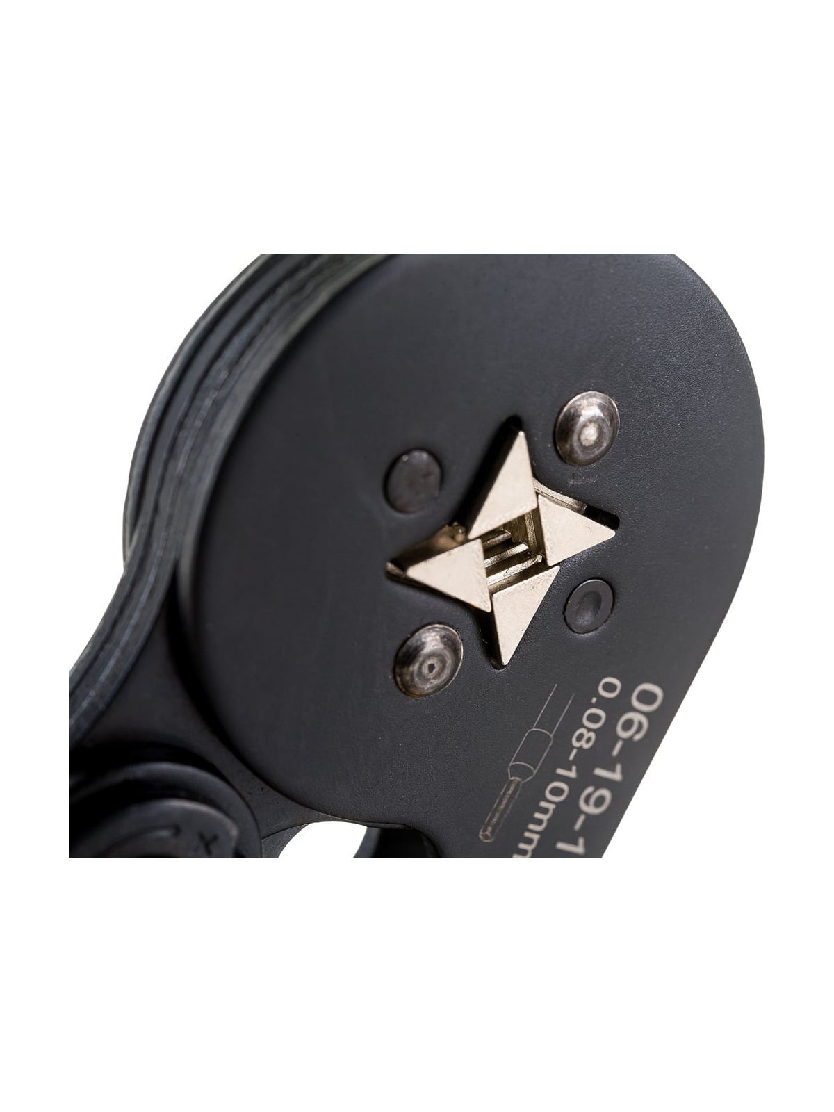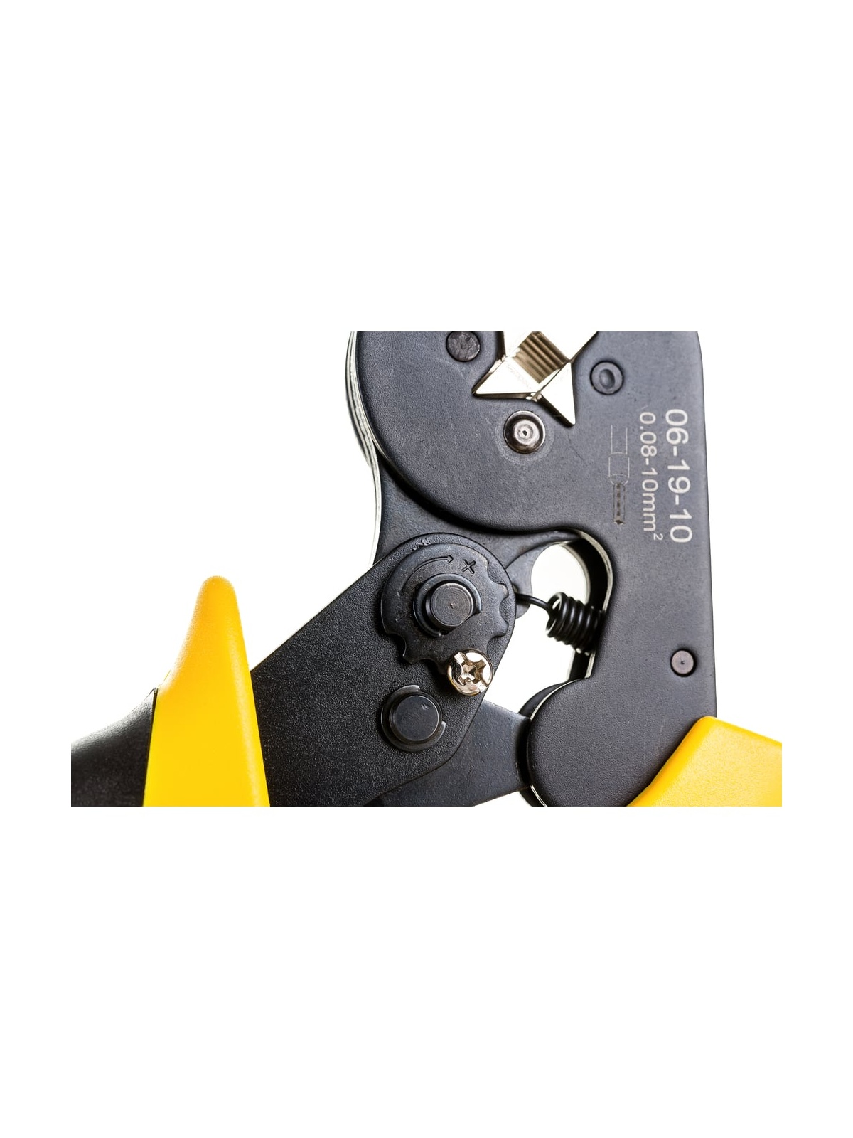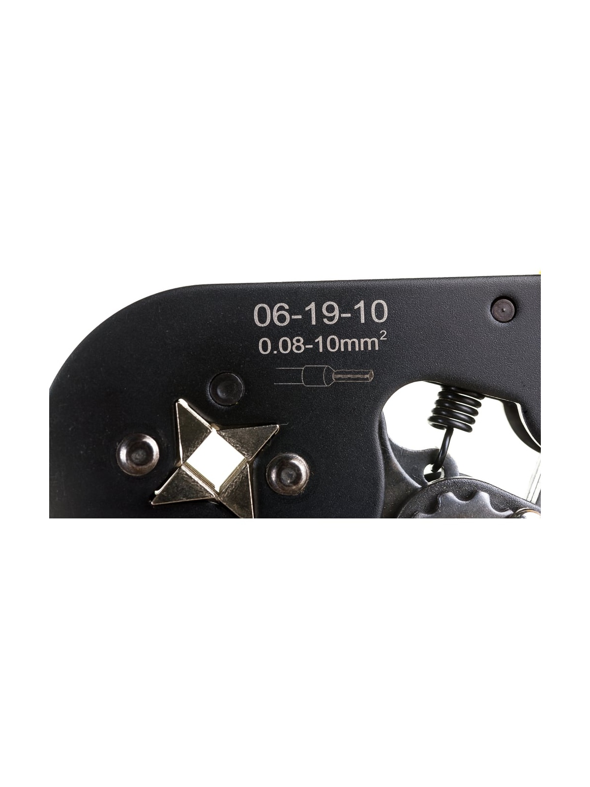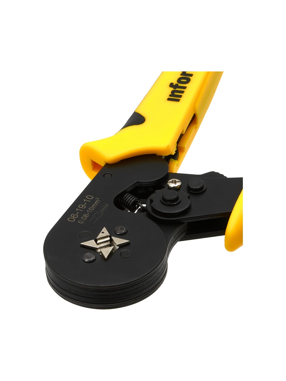 Квадратные пресс клещи Inforce 0.08-10 мм2 06-19-10 представляют собой удобный инструмент для обжима втулочных наконечников. Использование рычажной системы позволяет применять саморегулирующуюся матрицу. Имеют встроенный регулятор прижима. Изготовлены из высококачественной углеродистой стали с противокоррозийной обработкой. Имеют увеличенный срок эксплуатации. Удобные рукоятки с вставками из термопластрезины не скользят в ладонях. Нескользящие рукоятки Inforce 0.08-10 мм2 06-19-10 Квадратная матрица обжима с рифлением Одна саморегулирующаяся матрица на все типоразмеры диапазона Работа с наконечниками 0,08 – 10 мм²