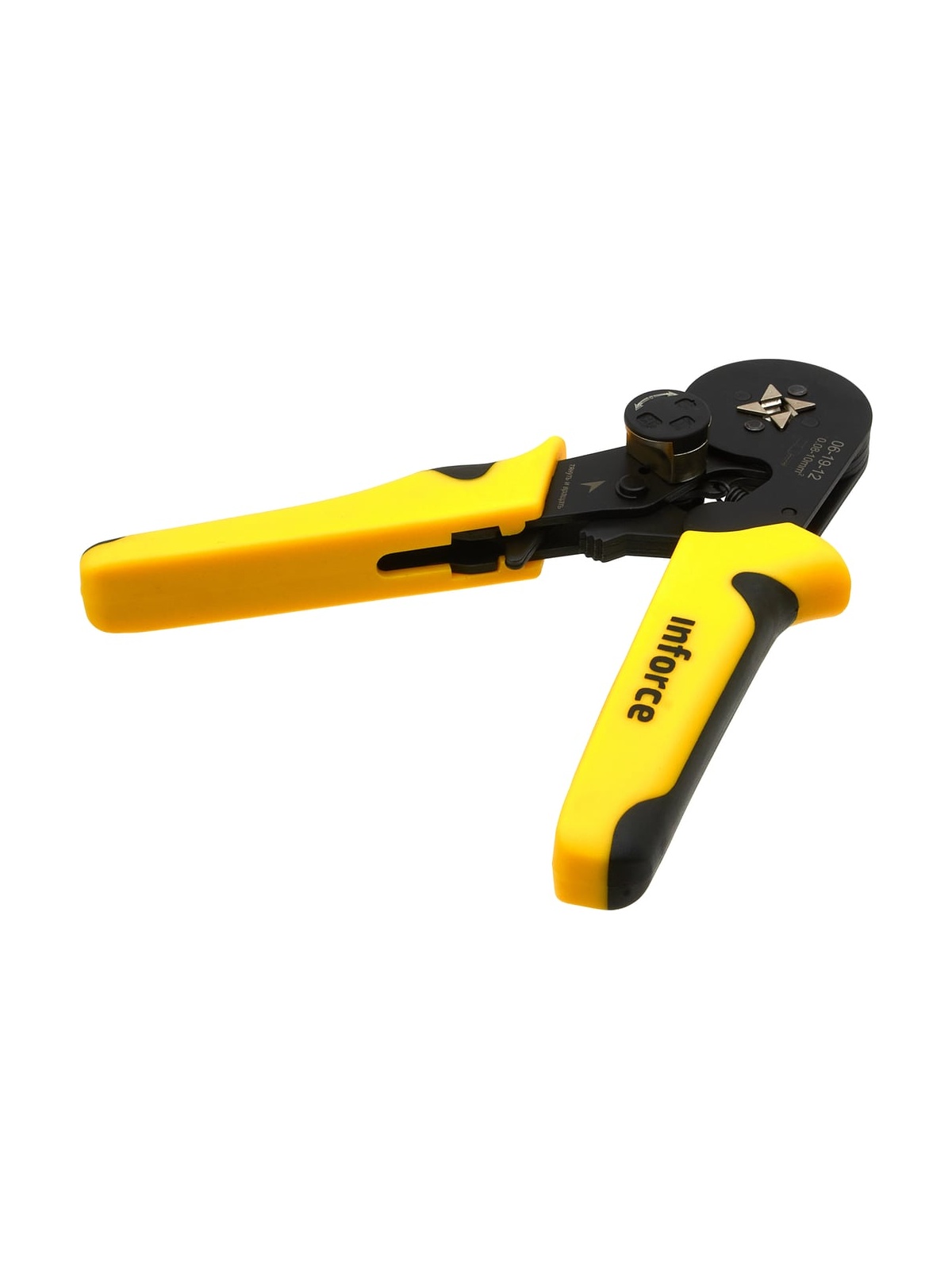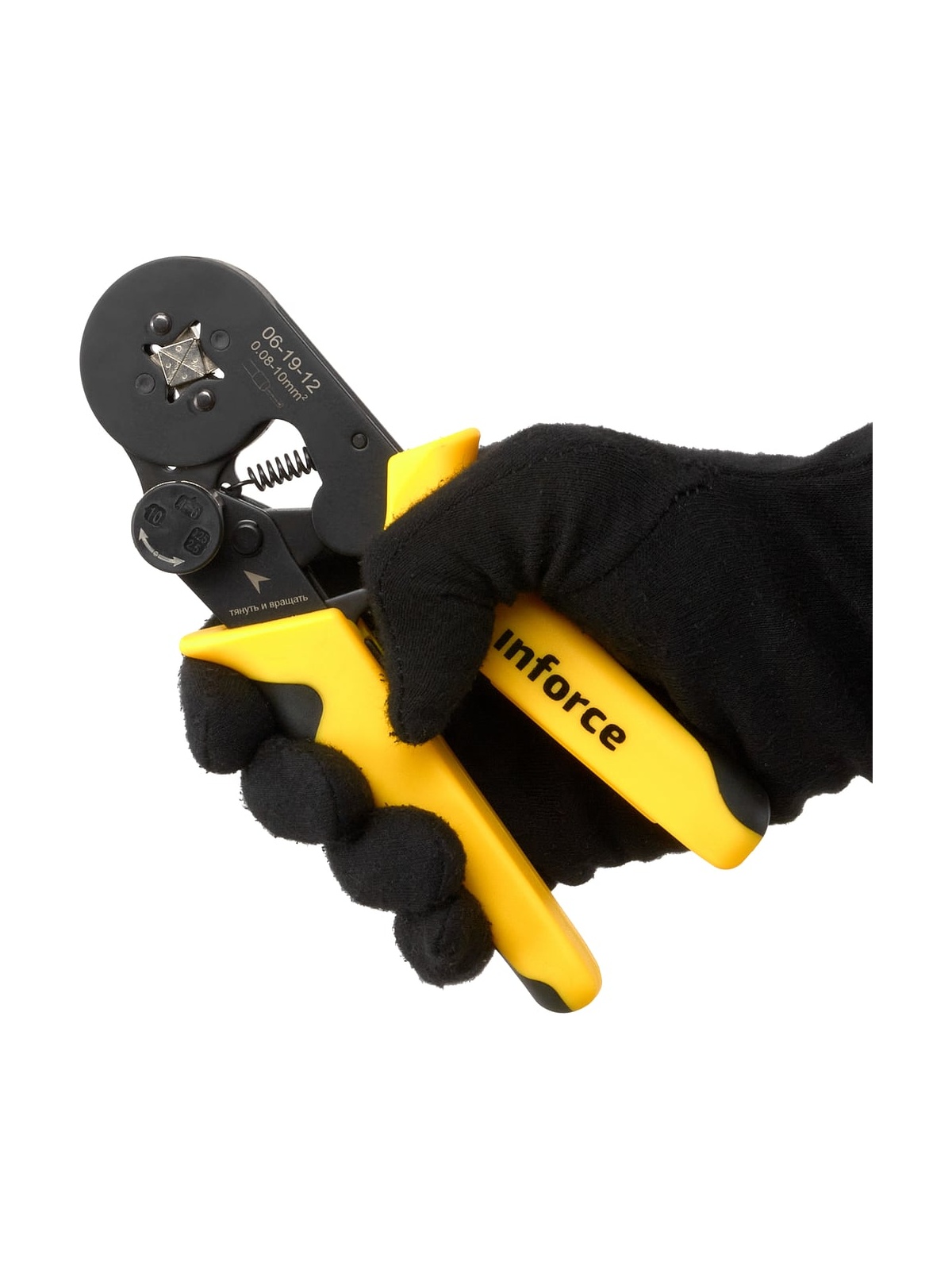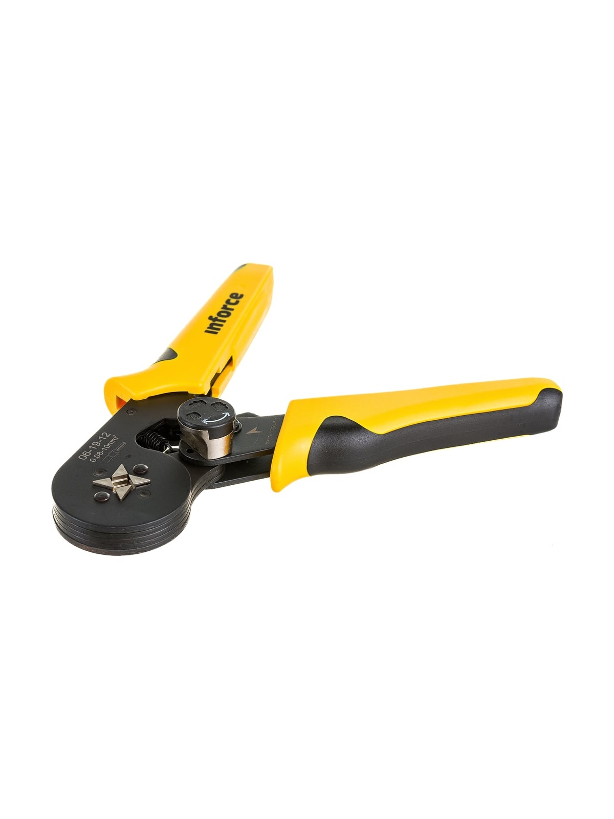 Квадратные пресс-клещи Inforce с регулировочным винтом, 0.08-10 мм2 06-19-12 оснащены саморегулирующейся матрицей. Накладки на рукоятках позволяют снизить нагрузку на запястье и облегчить работу. Предусмотрен винт для экстренной разблокировки. Пресс-клещи предназначены для профессионального использования и имеют повышенный ресурс. Регулятор прижимных усилий позволяет менять степень сжатия матриц либо в сторону увеличения, либо в сторону уменьшения. Храповой механизм Inforce обеспечивает качественный обжим. Одна саморегулирующаяся матрица на все типоразмеры диапазона. Инструмент перекрывает диапазон из 17 размеров втулочных наконечников. Работа с проводами сечением 0,08 – 10 мм².
