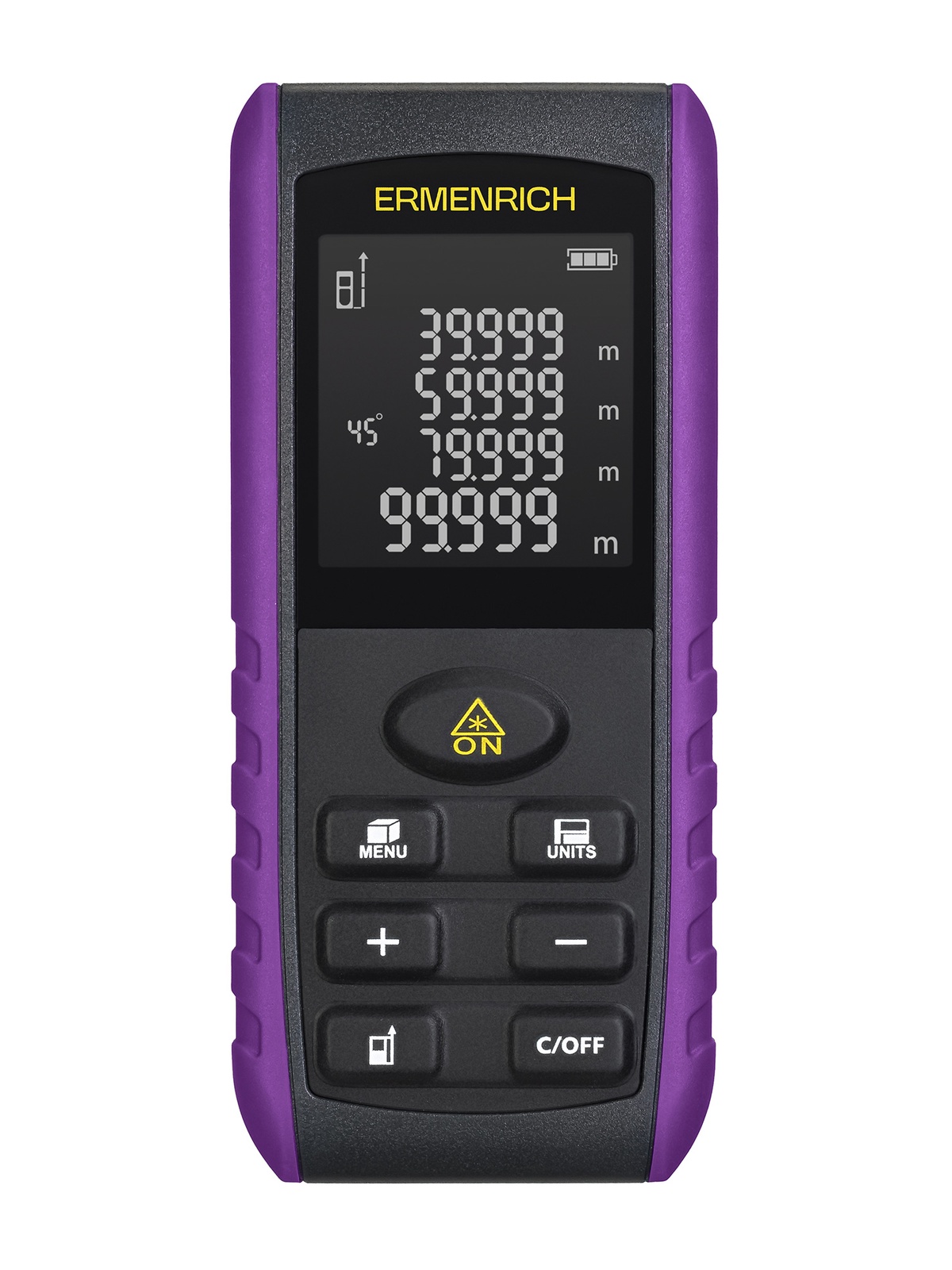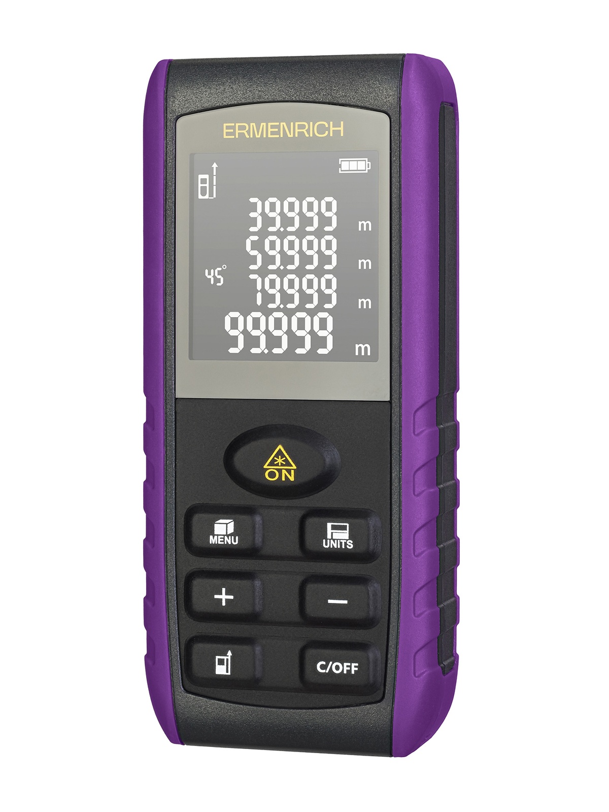 Ermenrich Reel PRO GE80 – многофункциональная лазерная рулетка, которая поможет решить множество задач в строительстве, ремонте и быте. Ее назначение – измерение расстояний, углов, вычисление объема и площади объекта. Особенно полезной будет функция «Пифагор» – с ее помощью можно вычислять расстояние по косвенным замерам, если не получается направить лазер в нужную точку напрямую.