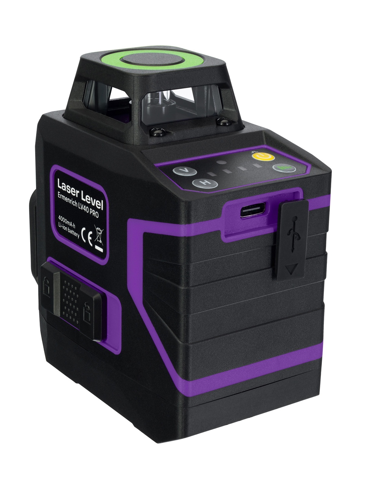 Лазерный уровень Ermenrich PRO LV40 снабжен механизмом компенсации, который за счет сглаживания вибраций осуществляет автоматическое выравнивание лазерных линий. Их яркость можно регулировать, доступно 4 степени интенсивности - это позволяет подобрать оптимальный вариант в соответствии с освещением на объекте. Встроенный аккумулятор способен работать автономно до 42 часов (при выборе минимальной яркости). Прибор рассчитан на работу в широком температурном диапазоне, прочный корпус защищен от пыли и водяных брызг.