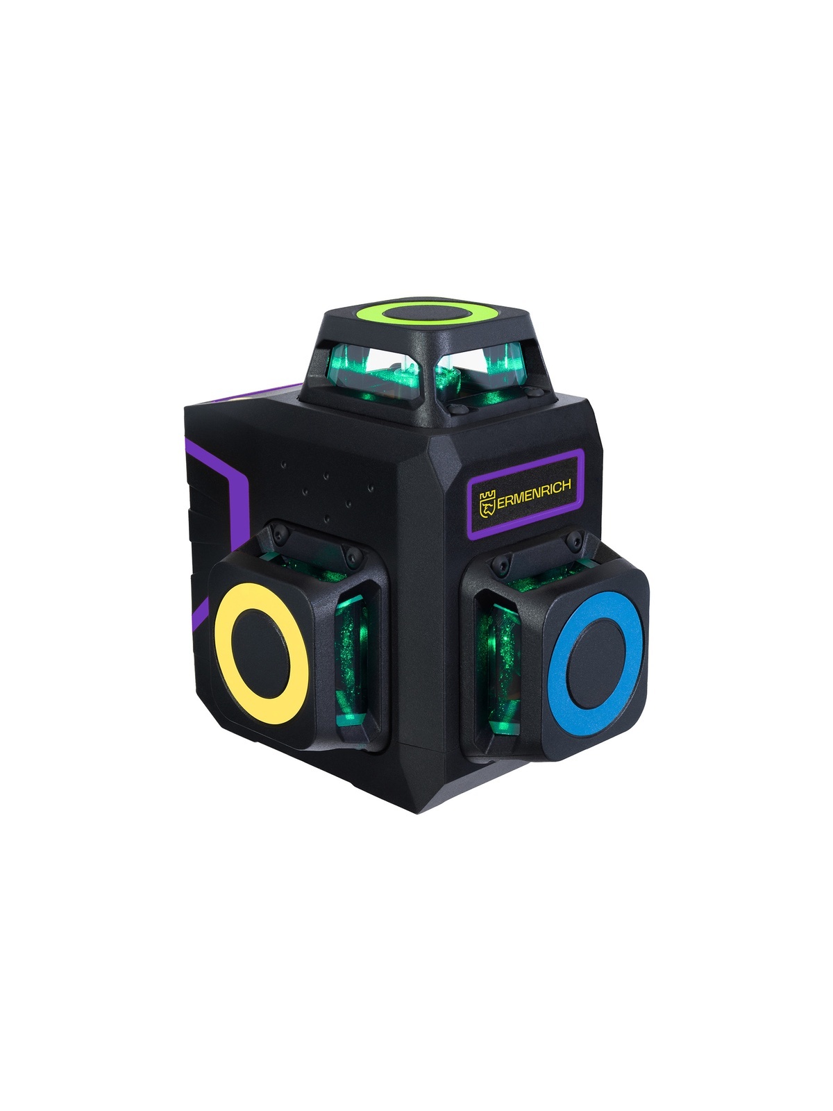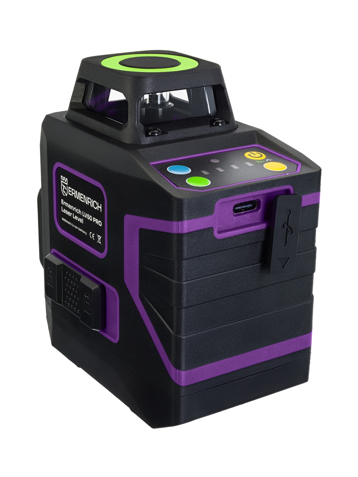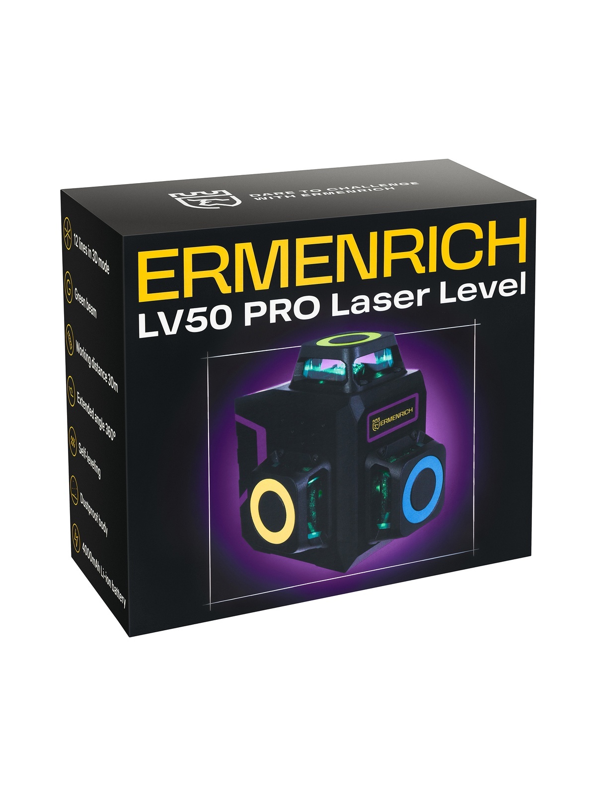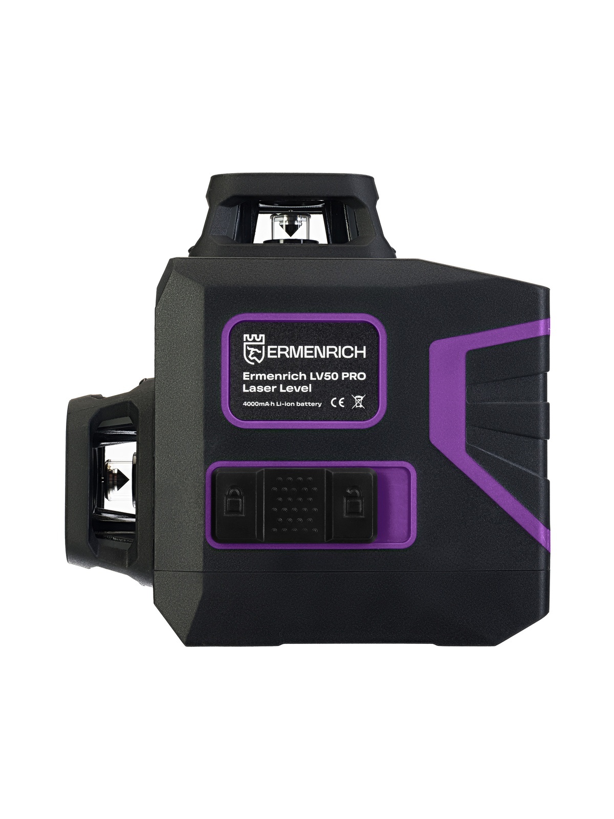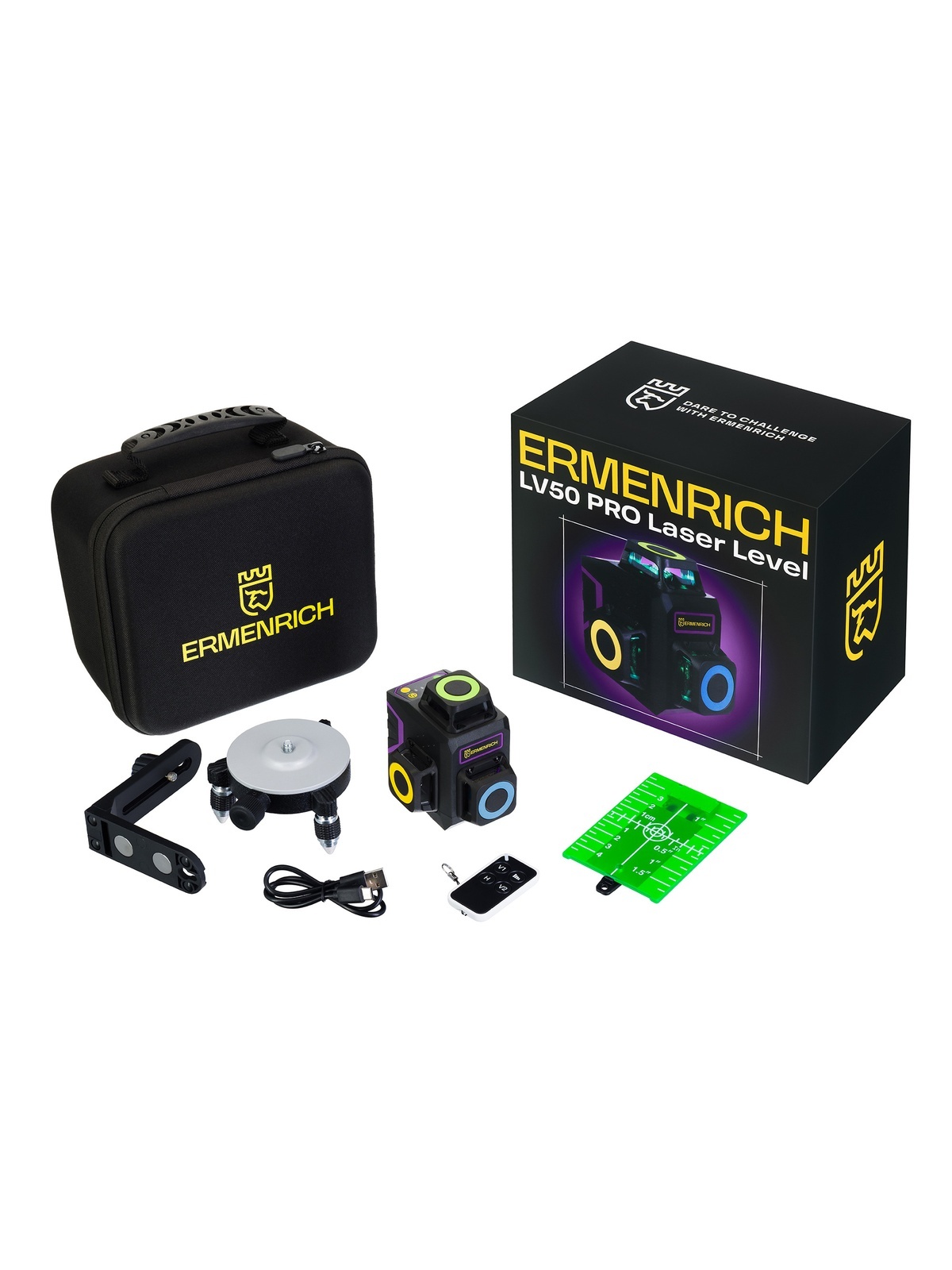 Дальность работы Ermenrich PRO LV50 достигает 30 метров, запускать лазер можно на расстоянии с помощью пульта дистанционного управления. Встроенный механизм самовыравнивания компенсирует вибрации. Литиевый аккумулятор, подзаряжаемый от сети по USB, обеспечивает долгую автономную работу. Ее срок будет зависеть от выбранного уровня яркости лазерных светодиодов - всего доступно 4 степени интенсивности. Подобрать оптимальный вариант не составит труда при любых условиях освещения. Корпус прибора защищен от пыли и брызг воды, при необходимости его можно закрепить на штативе 1/4 дюйма.