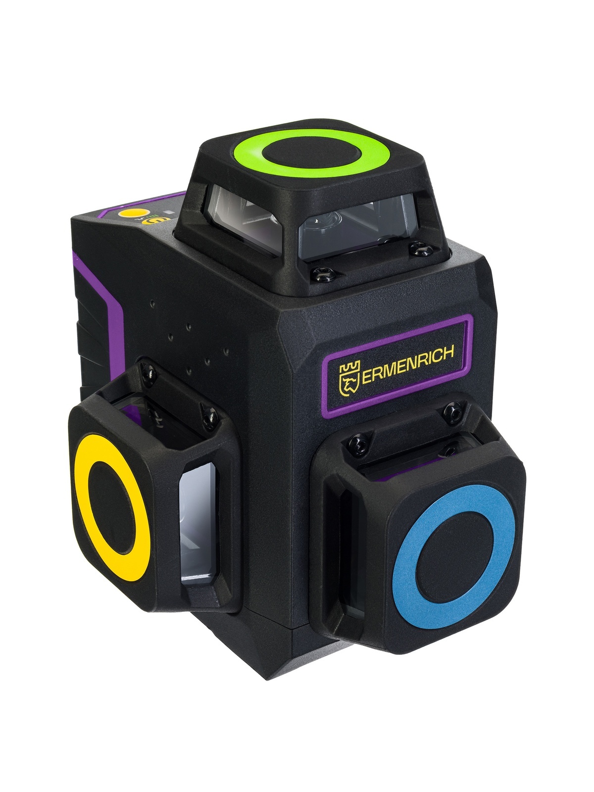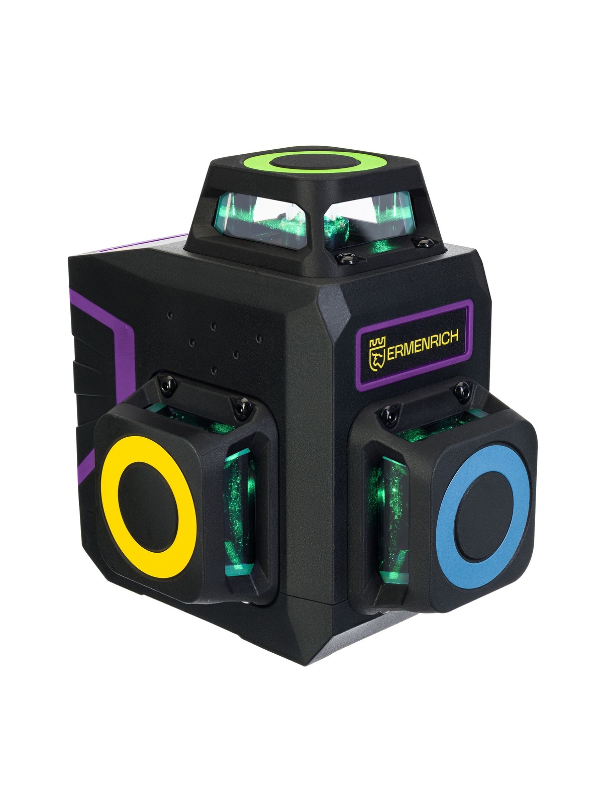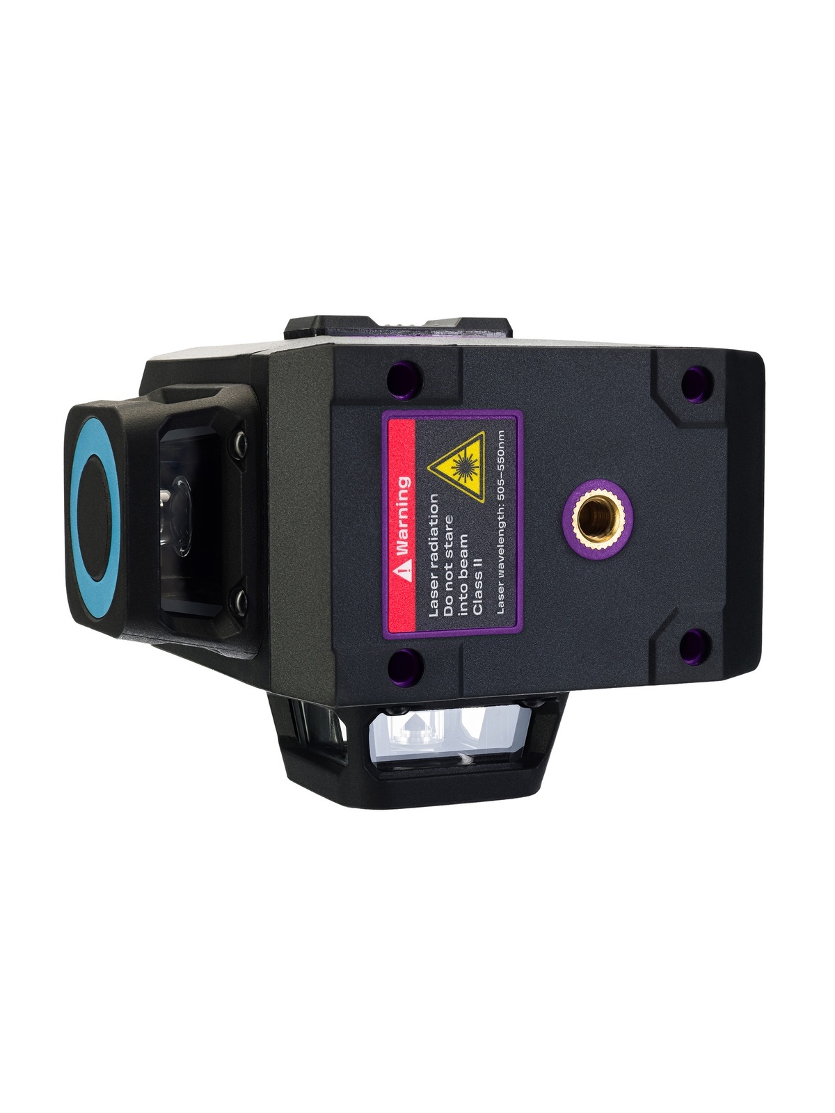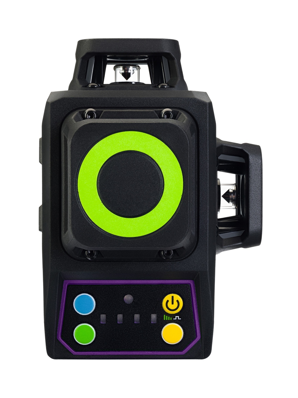 Уровень формирует 12 зеленых линий в трех проекциях, угол развертки составляет 360 градусов как в горизонтальной, так и в обеих вертикальных плоскостях. Благодаря этому можно эффективно выполнять разметку, выравнивание поверхностей и другие операции, требующие высокой точности.