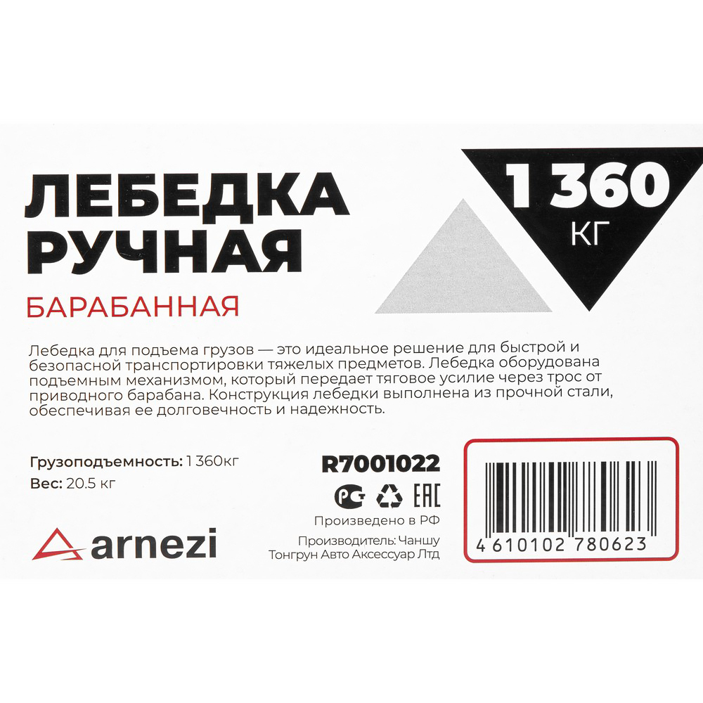 Лебедка ручная барабанная 1,4т ARNEZI R7001022