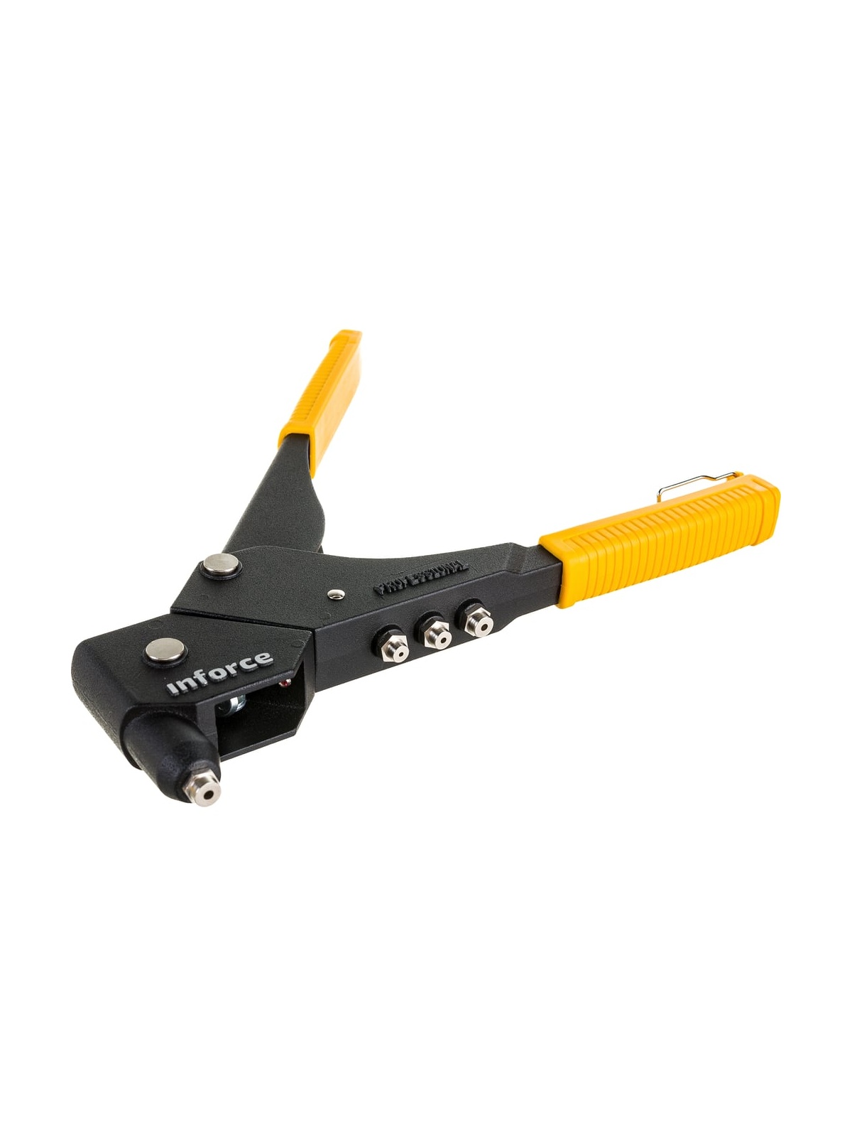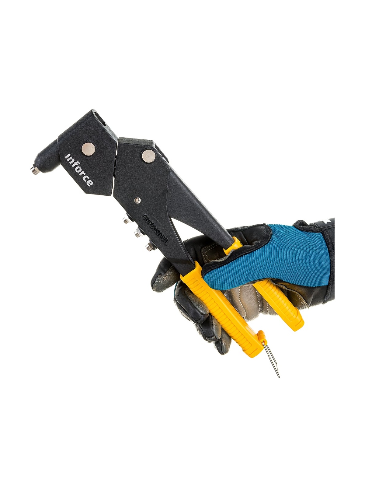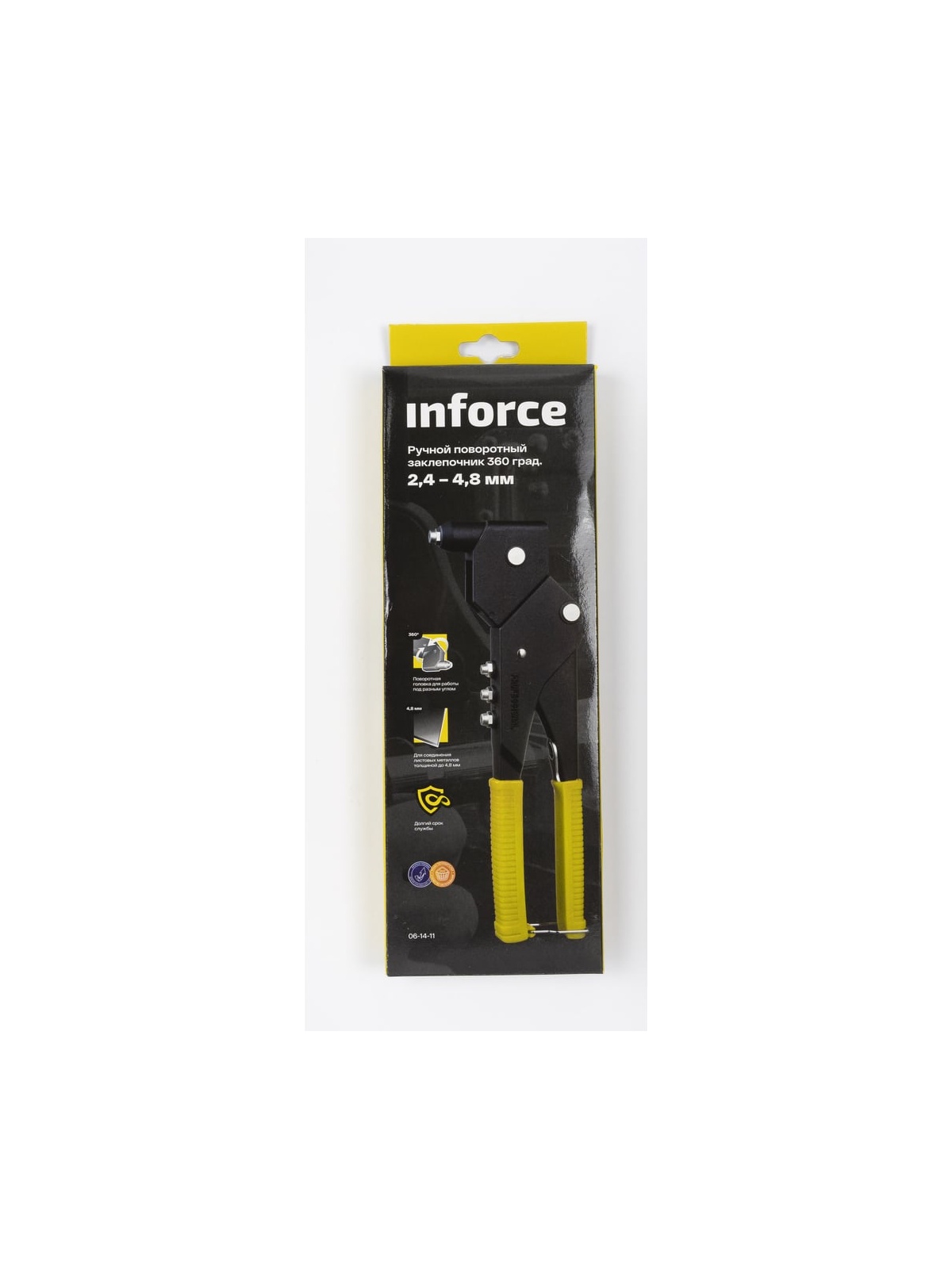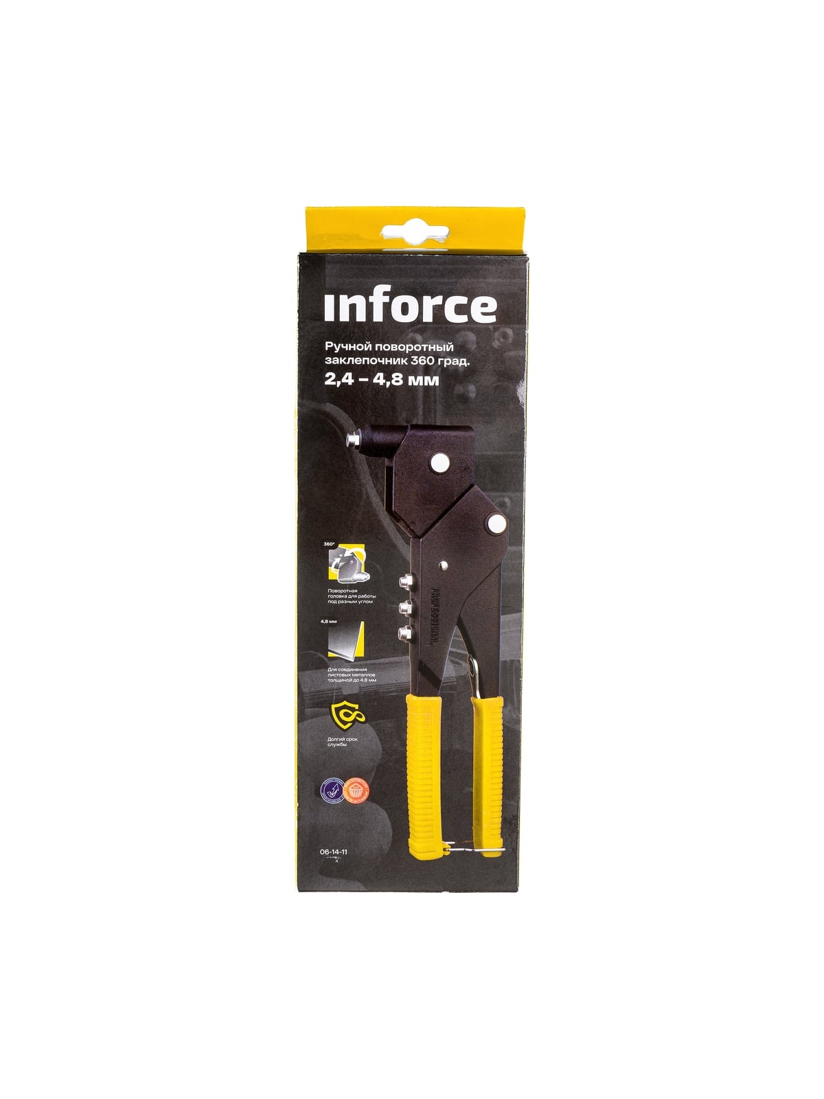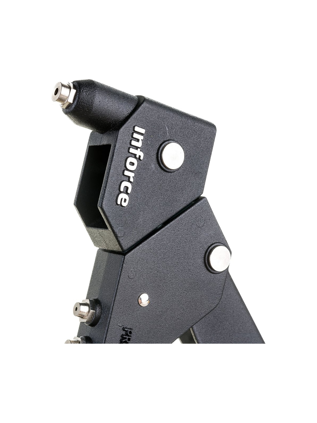 Литой ручной заклепочник Inforce поворотный 360 град., 2.4-4.8 мм 06-14-11 позволяет быстро и без особых усилий соединить между собой несколько слоев листового материала или закрепить его на жесткой основе. Удобные рукоятки облегчают эксплуатацию и исключают приложение больших усилий.