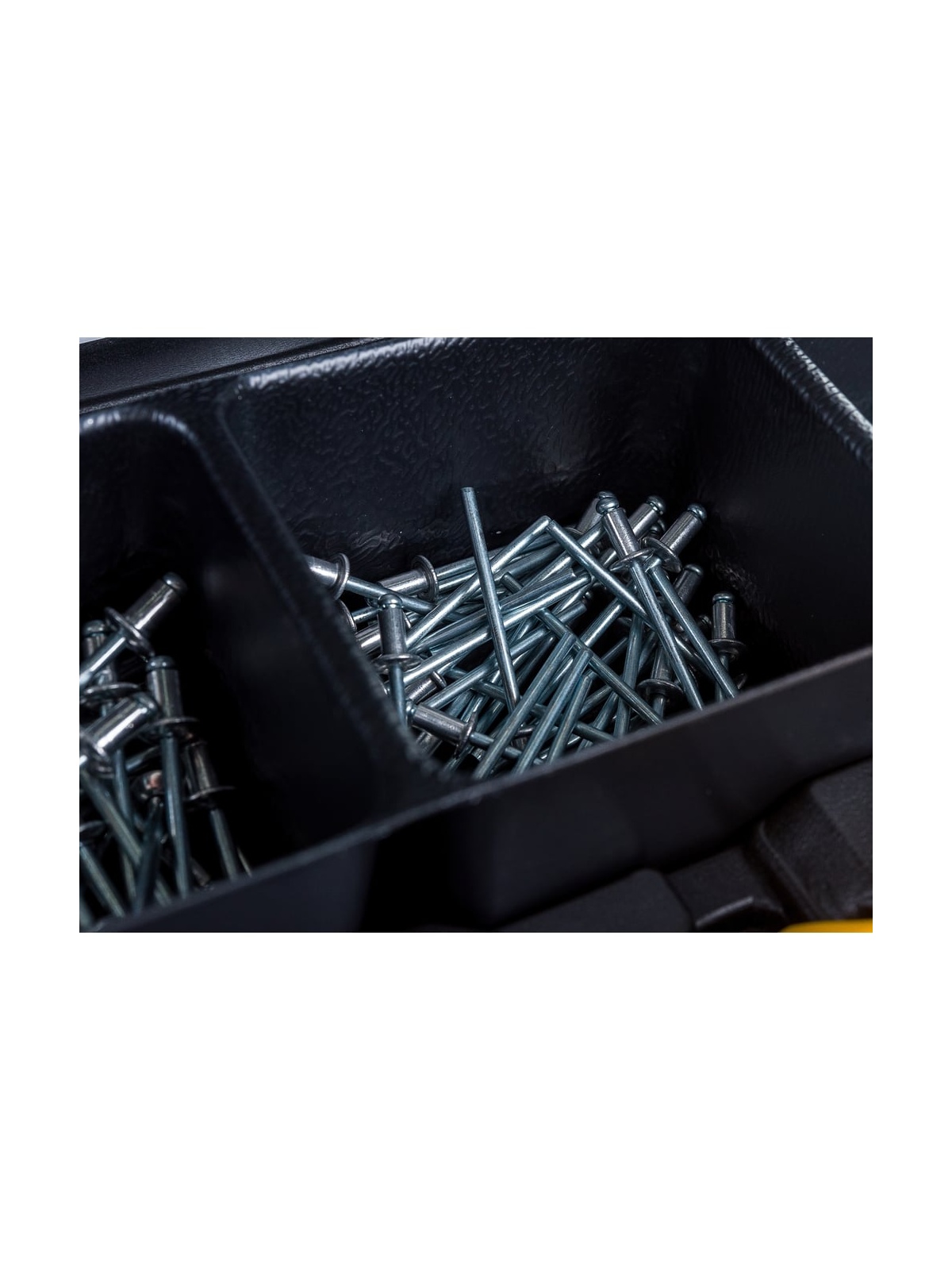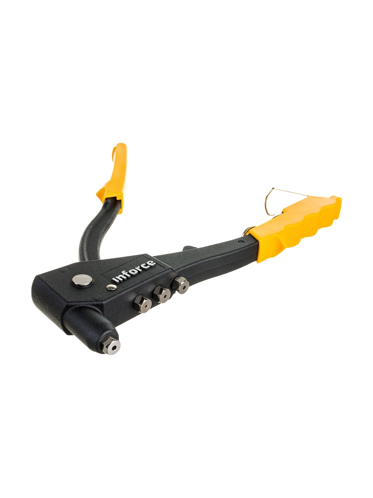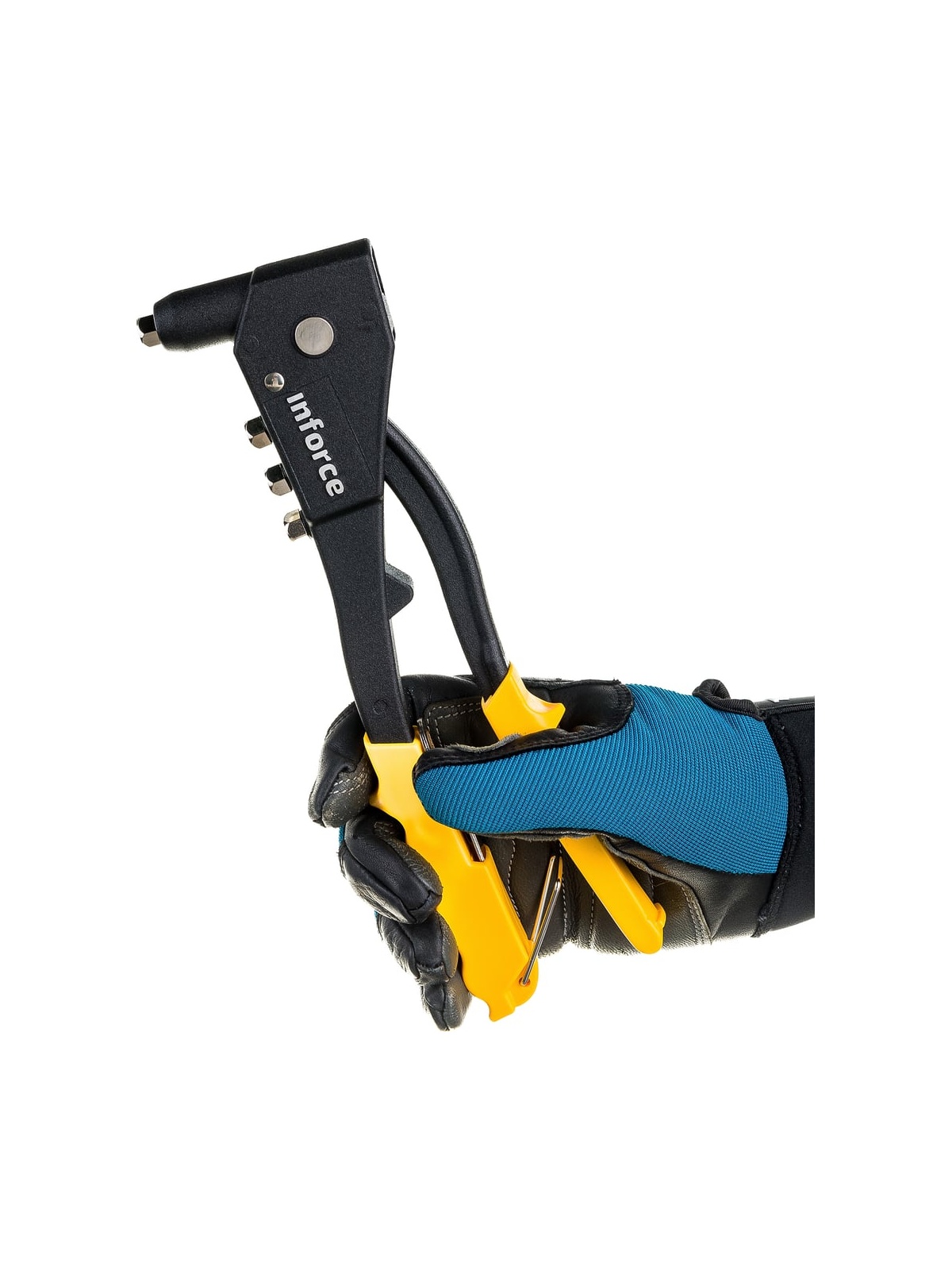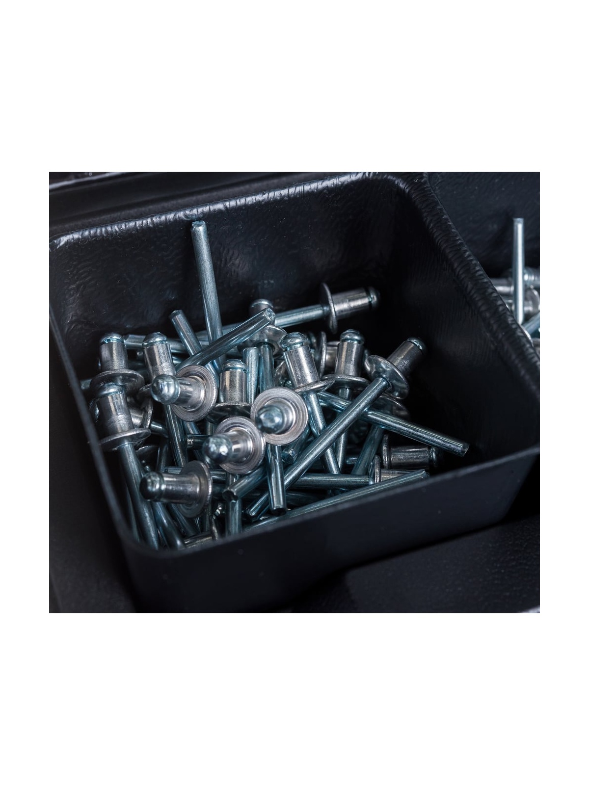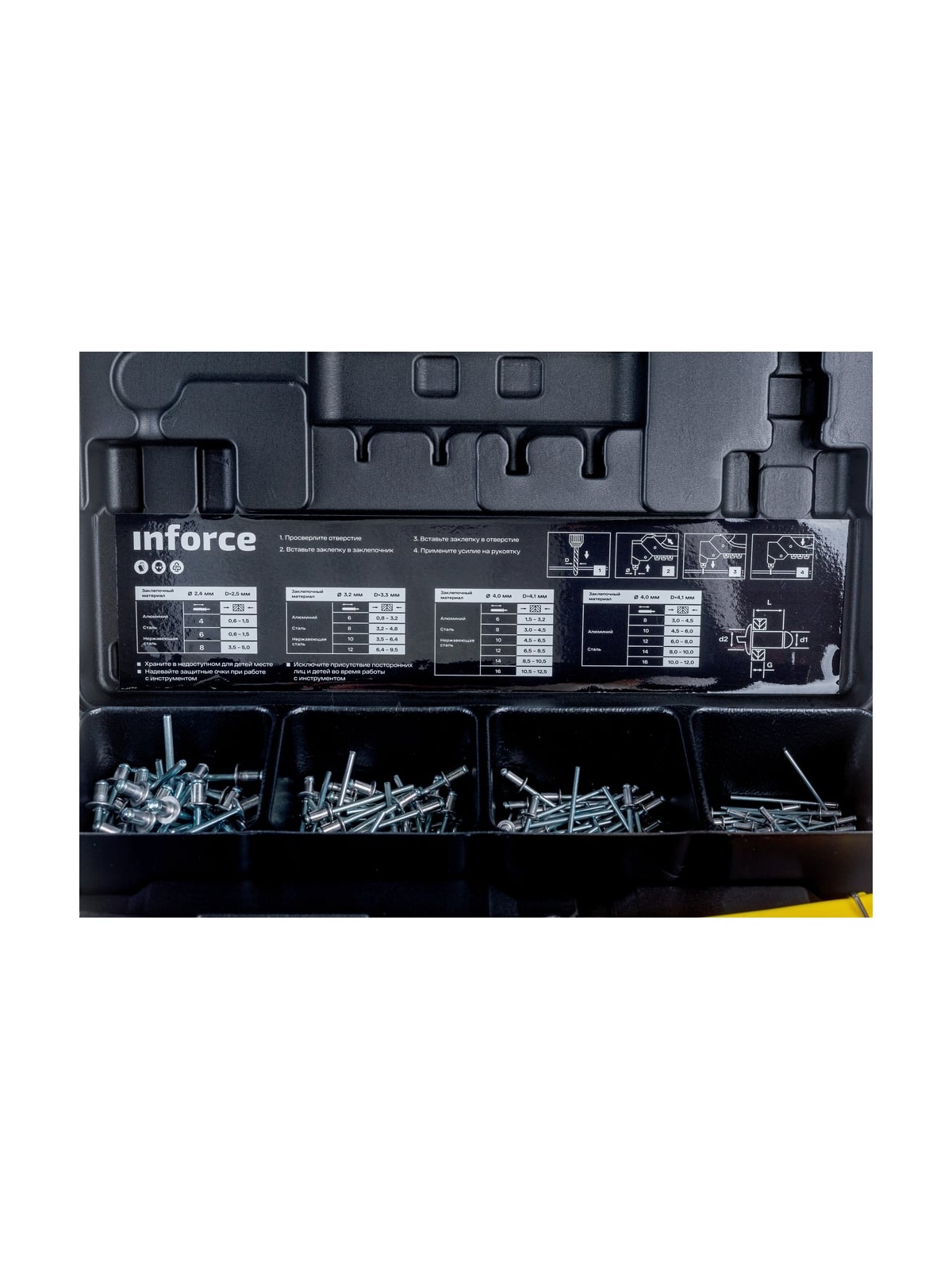Литой ручной заклепочник Inforce в кейсе, с набором заклепок 2.4-4.8 мм 06-14-101 позволяет быстро и без особых усилий соединить между собой несколько слоев листового материала или закрепить его на жесткой основе. Удобные рукоятки облегчают эксплуатацию и исключают приложение больших усилий.