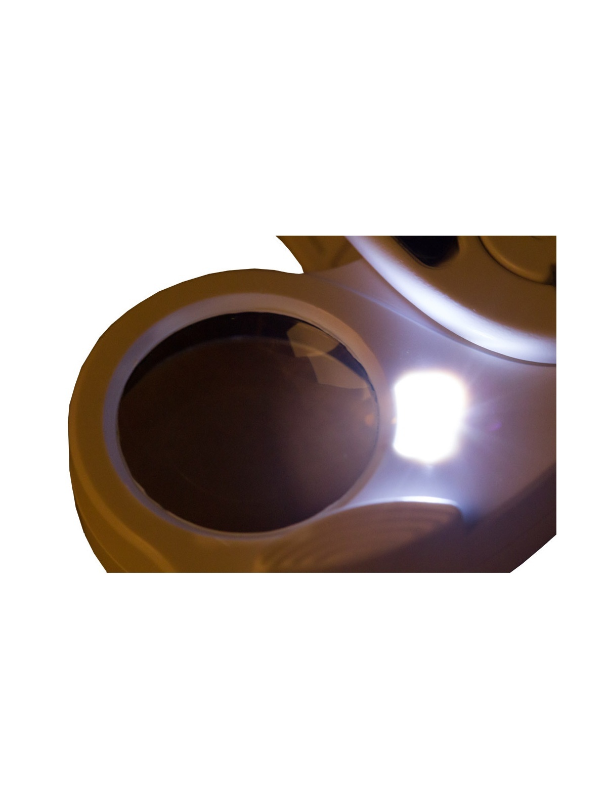Лупа Levenhuk Zeno Gem M7 – компактная лупа с двумя подсветками. Светодиодная лампочка помогает освещать рабочую область в темном помещении, а ультрафиолетовая служит для проверки подлинности купюр. Лупа дает 45-кратное увеличение и прекрасно подходит для изучения мелких текстов, иллюстраций и поверхностных дефектов. Эта лупа найдет своих поклонников среди коллекционеров, инженеров, биологов, моделистов, часовых мастеров. Пригодится она и тем, кто часто работает с бумажными деньгами.