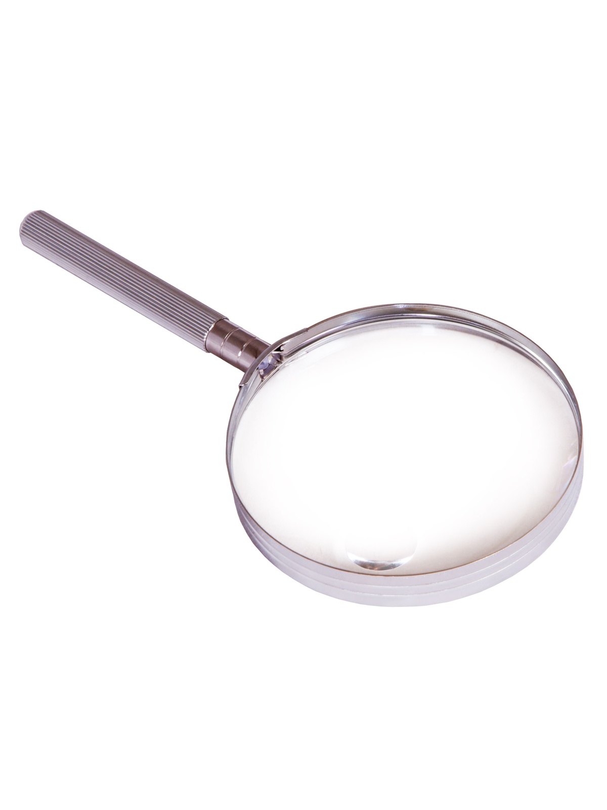 Линза сделана из пластика и помещена в металлический корпус. Ручка с ребристой поверхностью тоже сделана из металла.