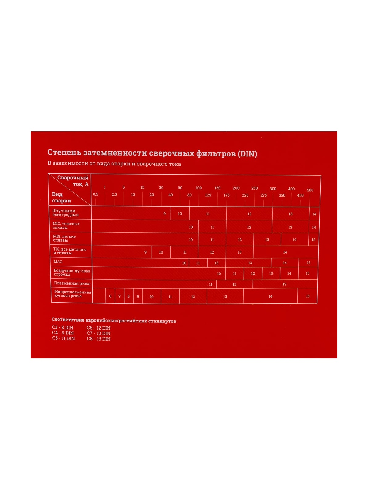 Степень затемнения, DIN - 5-8/9-13