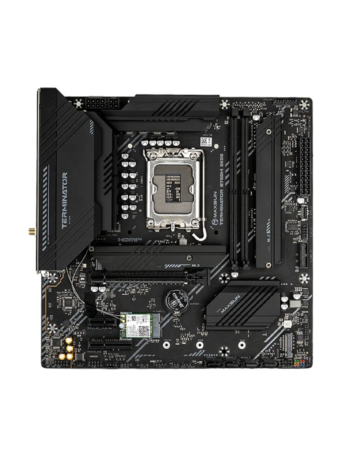 MAXSUN MS-Terminator B760M GKD5 WIFI (Socket 1700, mATX, 2*DDR5(96Gb), DP/HDMI, 4*SATA3, 3*M.2, 1xPCI-Ex16/1*PCIEx4/1*PCIEx1, 6*USB 2.0, 2*USB 3.2, LAN 1*2.5G, Wi-Fi 6, RTL)