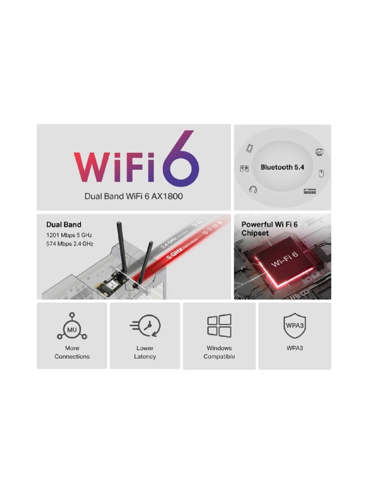 Mercusys MA70XE Адаптер PCI Express с поддержкой Wi-Fi AX1800 и Bluetooth 5.4