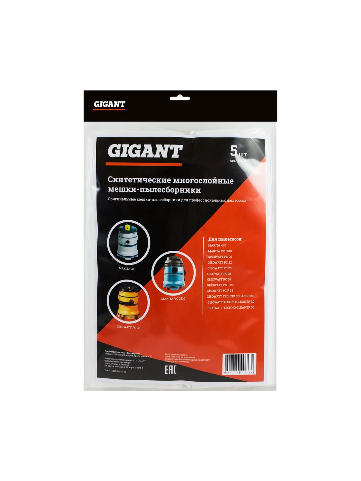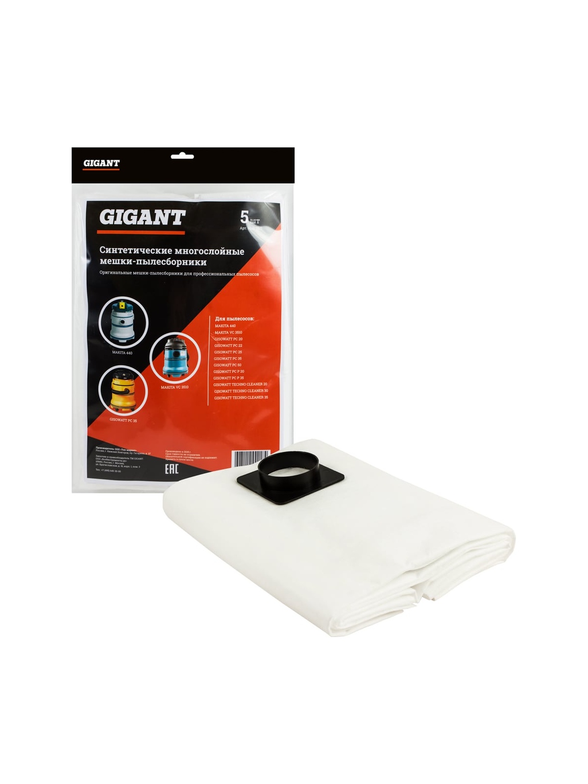 Мешки Gigant Mak 35/5 G-Mak-35/5 изготовлены из синтетического материала, обладающего большей механической прочностью, по сравнению с бумажными пылесборниками. Не теряют фильтрующих качеств даже при работе с влажным мусором. При использовании данных пылесборников двигатель пылесоса работает без перегрузок. В комплекте 5 штук. Мешки используются в качестве расходного материла в профессиональных пылесосах: MAKITA 440, VC 3510 GISOWATT PC 20, PC 22, PC 25, PC 35, PC 50, PC P 20, PC P 35, TECHNO CLEANER 20, TECHNO CLEANER 30, TECHNO CLEANER 35 Продукция представлена профессиональными и бытовыми инструментами, имеет доступную цену и высокое качество. При изготовлении товаров Gigant используется современное оборудование и прочные материалы. Производство осуществляется на современных предприятиях России и Азии. Тестирование товаров осуществляется в два этапа, каждая партия инструментов проходит проверку на соответствие стандартам и заявленным техническим характеристикам. Это является залогом качества и надежности готового продукта. Продукция представлена широкой линейкой инструментов. У нас можно приобрести ручной инструмент, строительный, садовый, сантехнический, климатический, крепежный, автогаражный, а также станки, расходные материалы и многое другое.