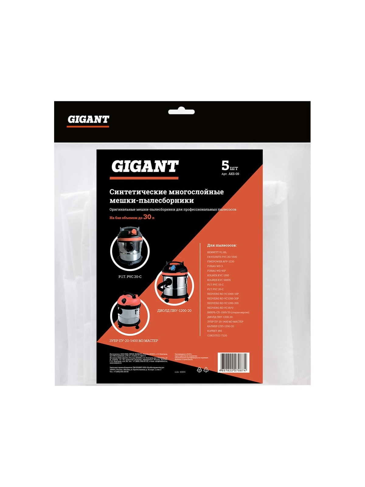 Мешок-пылесборник синтетический трехслойный до 25л, 5 шт Gigant AKS-09 изготовлен из трехслойного нетканого синтетического волокна MicroFib, обеспечивающего высокую прочность и устойчивость к влаге и острым предметам. Используется совместно со строительными пылесосами для тонкой очистки от мельчайших частиц пыли.
