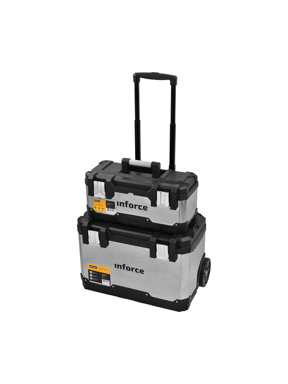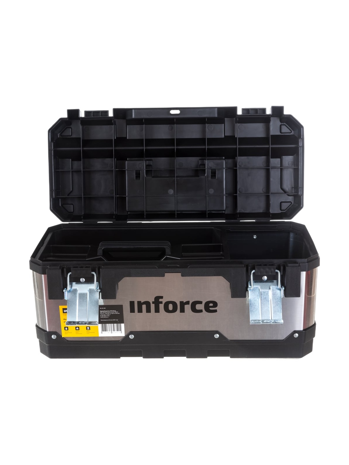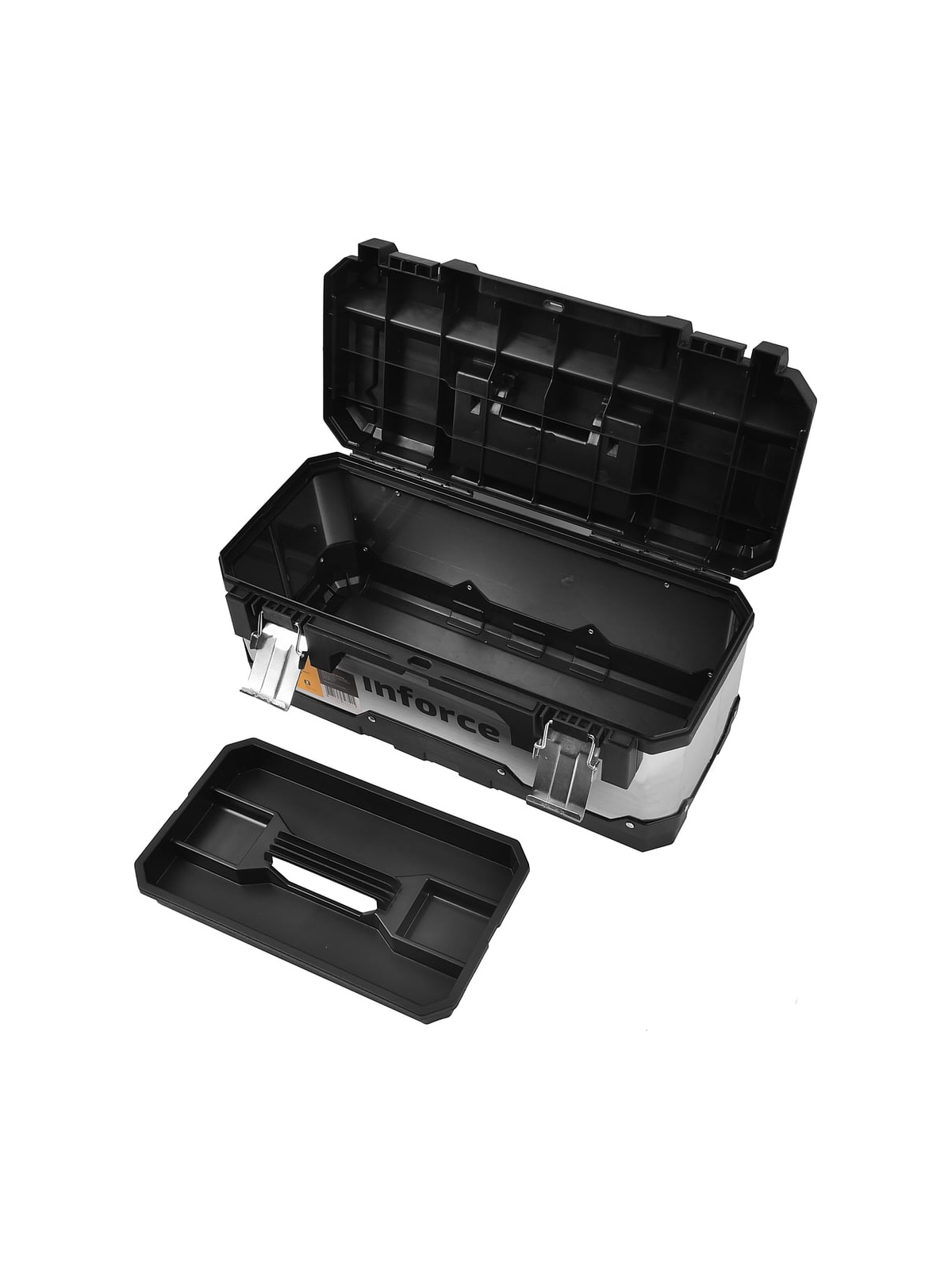 Металлопластиковый ящик для инструментов 20" Inforce 06-20-08 удобен для транспортировки ручного инструмента в большом количестве. Модель оснащена прочными металлическими стенками и ударопрочными угловыми элементами из пластика. Для транспортировки есть широкая рукоять. Для большей вместимости можно объединить с ящиком для инструментов Inforce 24". Грузоподъемность 20 кг.