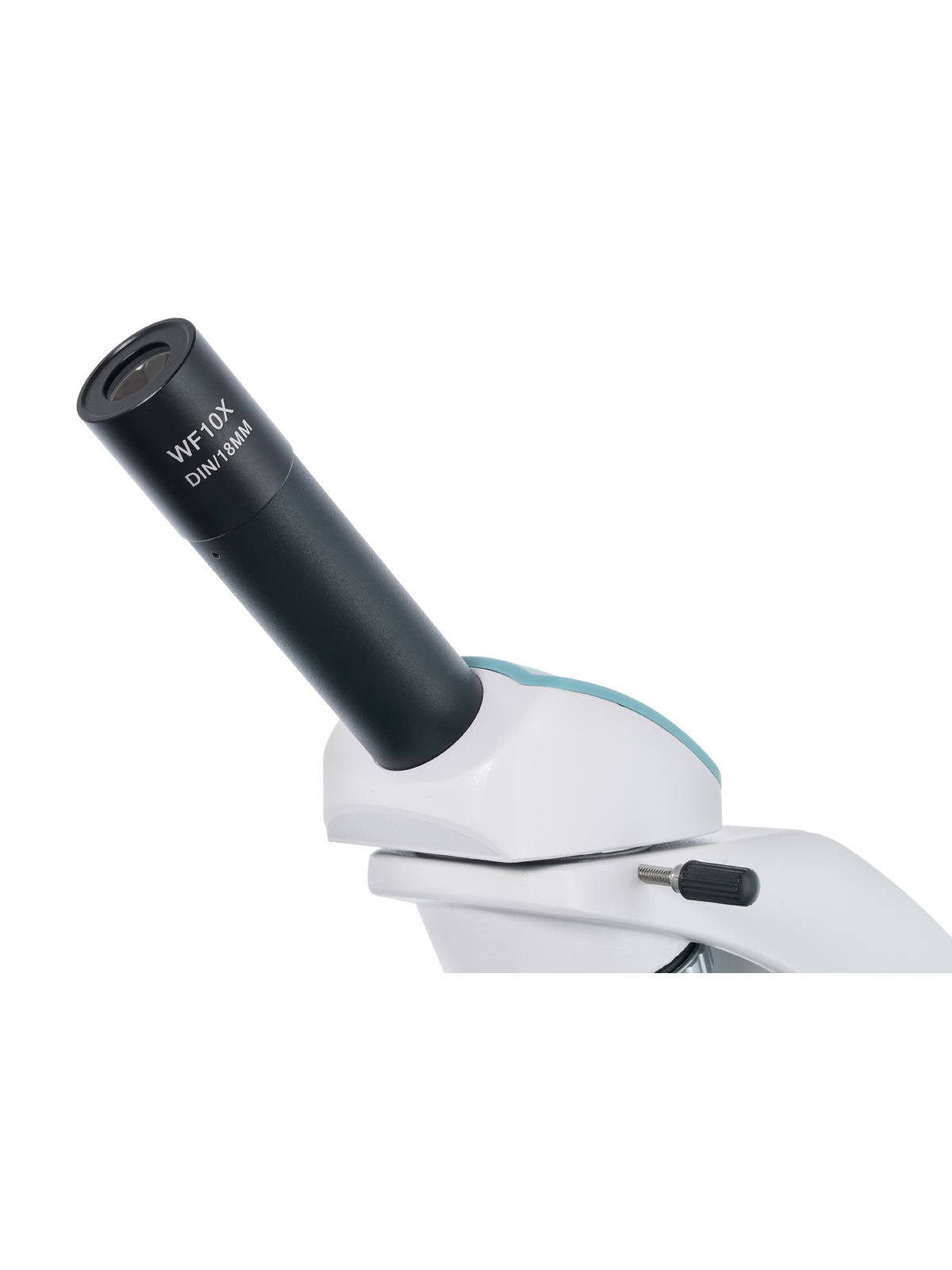 Насадка вмещает только один окуляр. В комплект поставки уже включен 10-кратный окуляр. Визуальный блок может вращаться на 360° и имеет наклон в 45° – это значительно упрощает длительную работу с микроскопом. Револьверное устройство позволяет установить три объектива, в базовой комплектации уже есть три ахроматических объектива с кратностью 4х, 10х и 40х. Пружинящая оправа есть только у 40-кратного объектива.