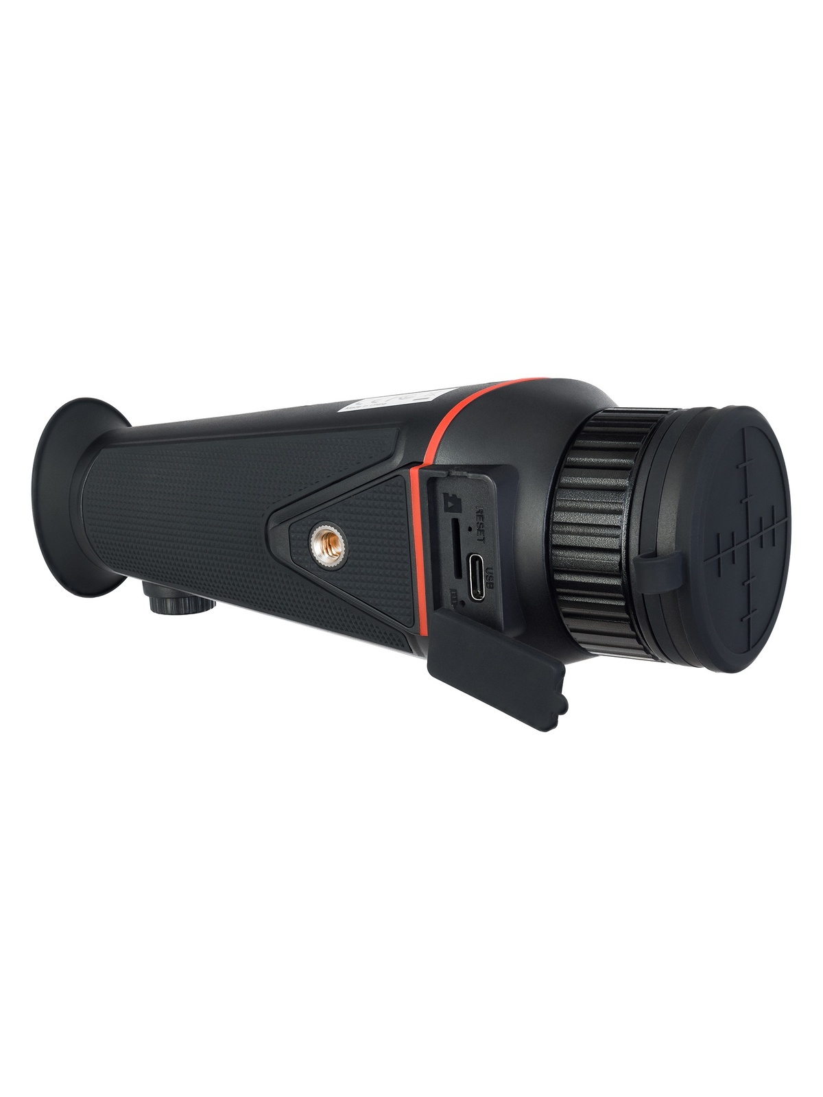 Монокуляр работает от встроенного аккумулятора. При полном заряде его энергии хватит на 13 часов работы при выключенном ИК-осветителе и на 5 часов при ночных наблюдениях. Сэкономить энергию поможет режим автоотключения: время можно выбрать из нескольких вариантов. Заряжается аккумулятор через кабель USB. Корпус устройства из металла и пластика имеет силиконовое покрытие, монокуляр хорошо и надежно ложится в руку и не выскользнет, даже если вы работаете в перчатках. Прибор защищен от проникновения пыли и от распыления воды. Монокуляр пригоден как для работы внутри помещений, так и для наружного наблюдения. Он выдерживает температуры от -20 до +50 °С при работе, а безопасно храниться может при диапазоне от -30 до +60 °С.