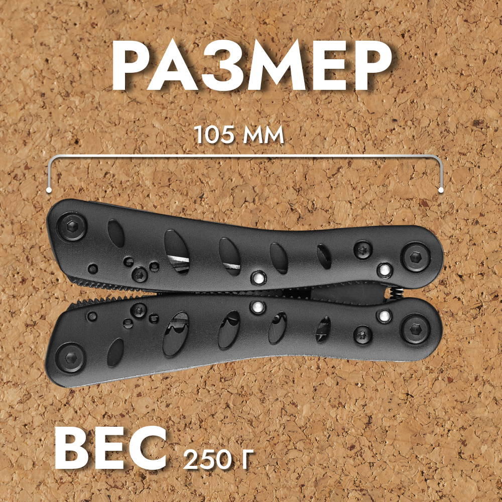 Крепко натянутая пружина позволяет легко и быстро получить доступ к нужному инструменту. Полая конструкция пассатижей и каркас с прорезями по типу “скелетонизированного” облегчает вес EDC мультитула. Вес модели Ganzo G205-B составляет 250 грамм. Инструмент не займет много места в кармане брюк или на полке в бардачке машины, а также несущественно увеличит нагрузку туристического снаряжения. Мультитул с плоскогубцами Ganzo G205-B – надежный компаньон для тех, кто ценит удобство и функциональность в одном инструменте.