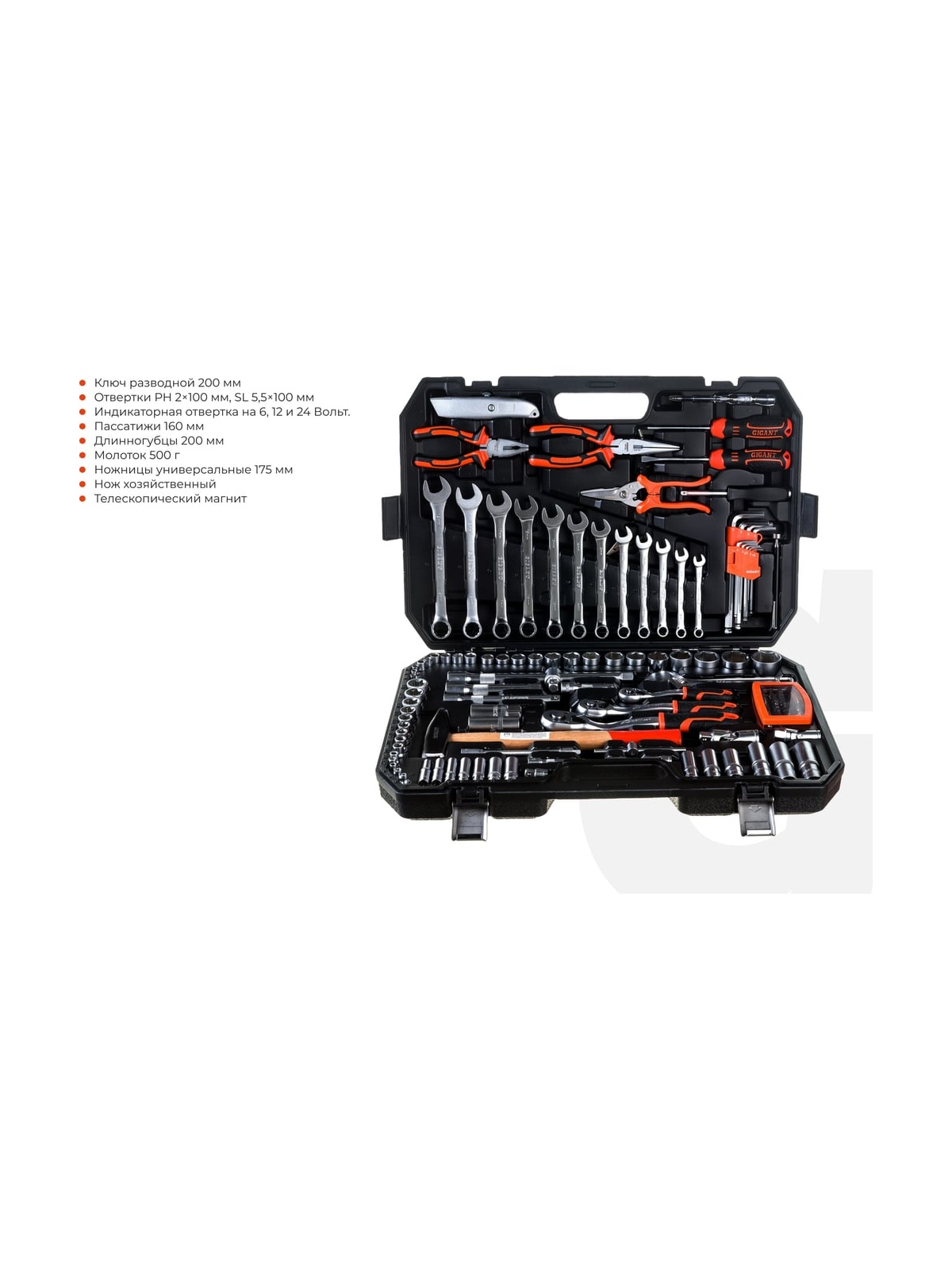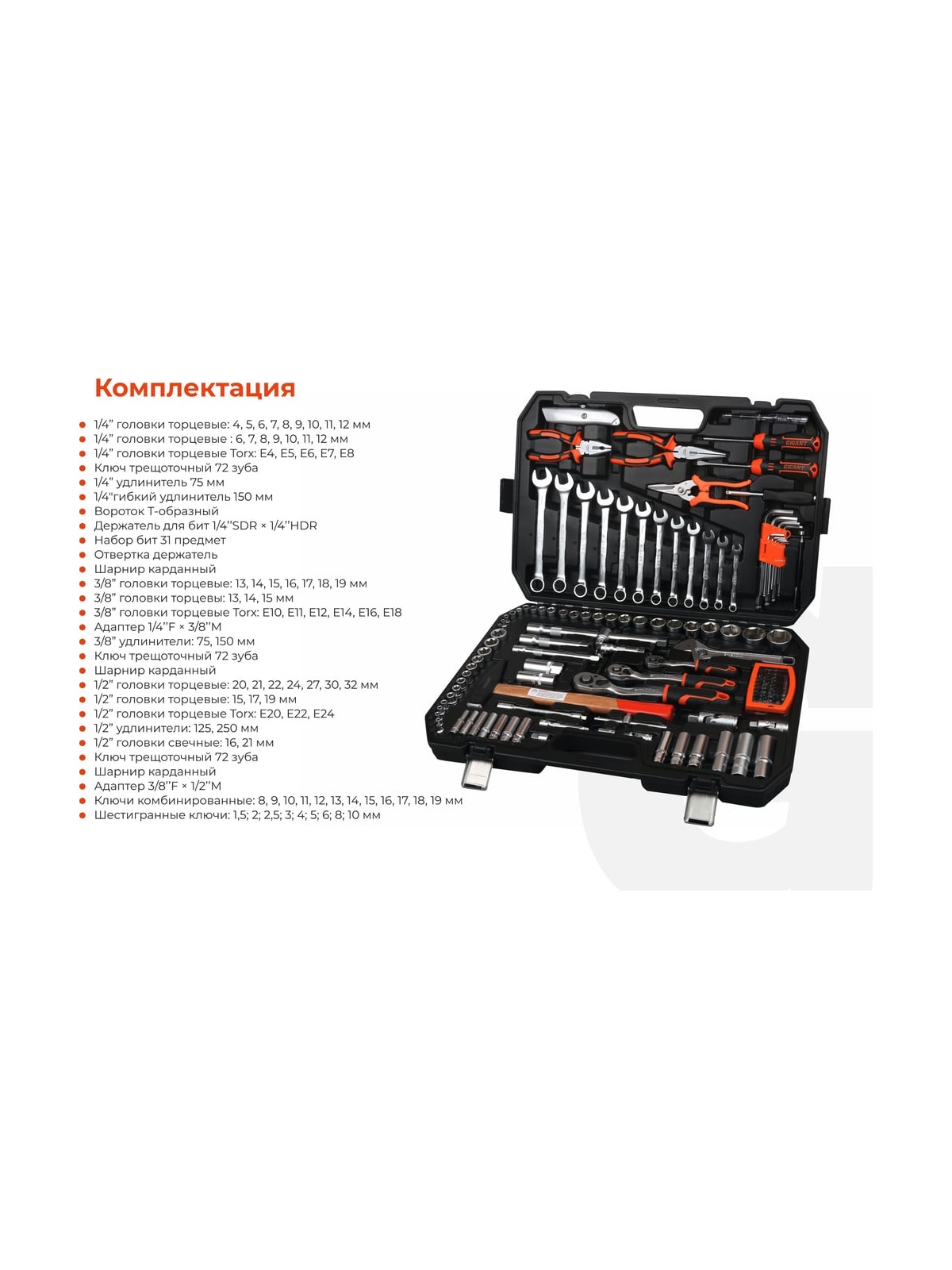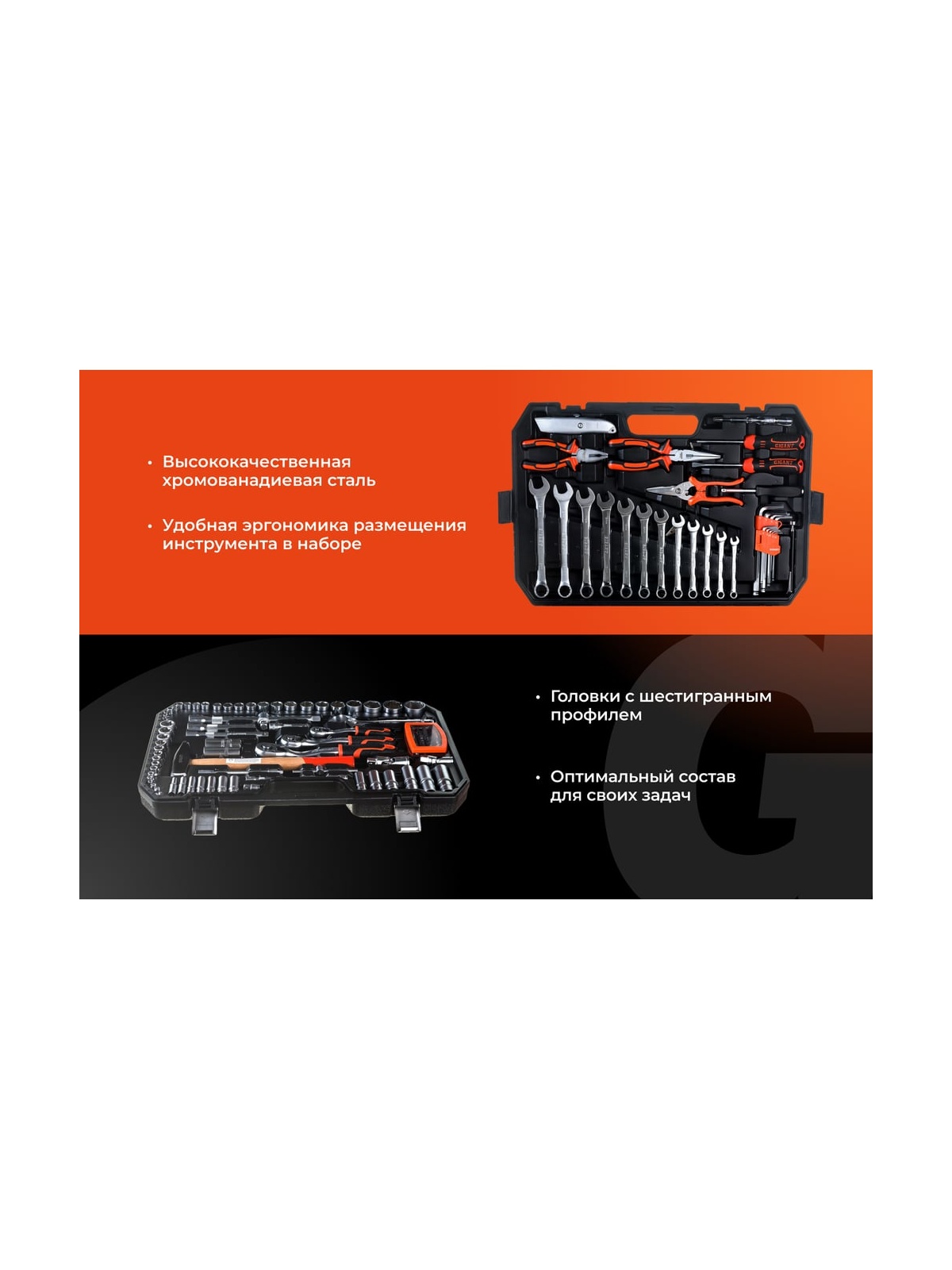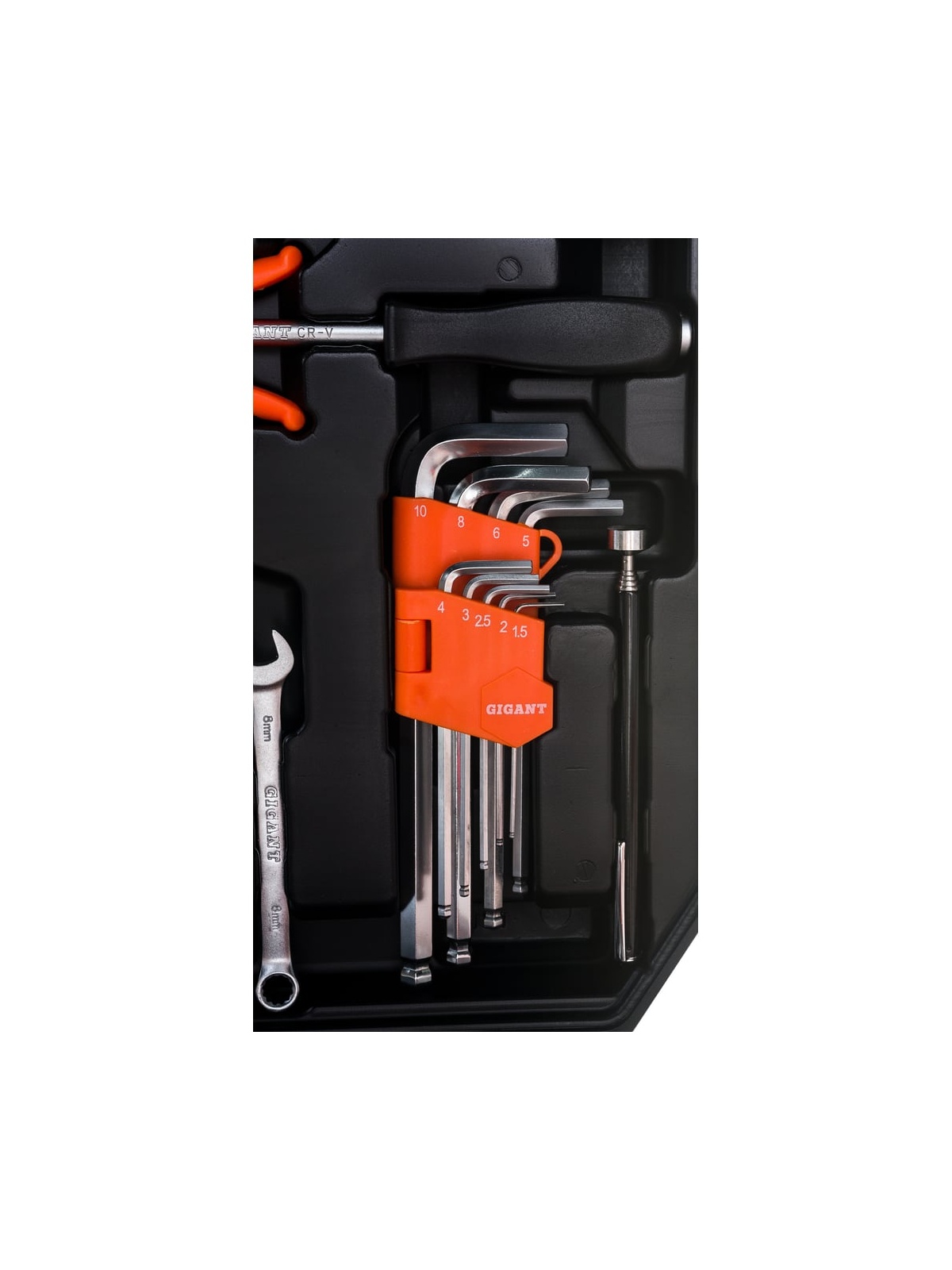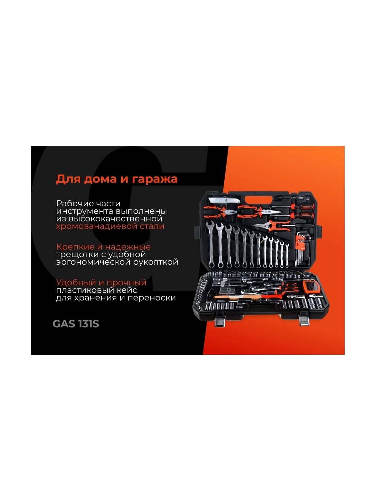 Набор автомобильного инструмента Gigant 131 предмет GAS 131S представляет собой многофункциональный комплект, в котором все инструменты изготовлены из высокопрочной хромованадиевой стали, отличающейся стойкостью к большим нагрузкам и коррозии. Изделия набора применяются для обслуживания и ремонта автомобиля. Кейс для хранения изготовлен из экологичного пластика, оснащен ручкой и защелками для комфортной транспортировки.
