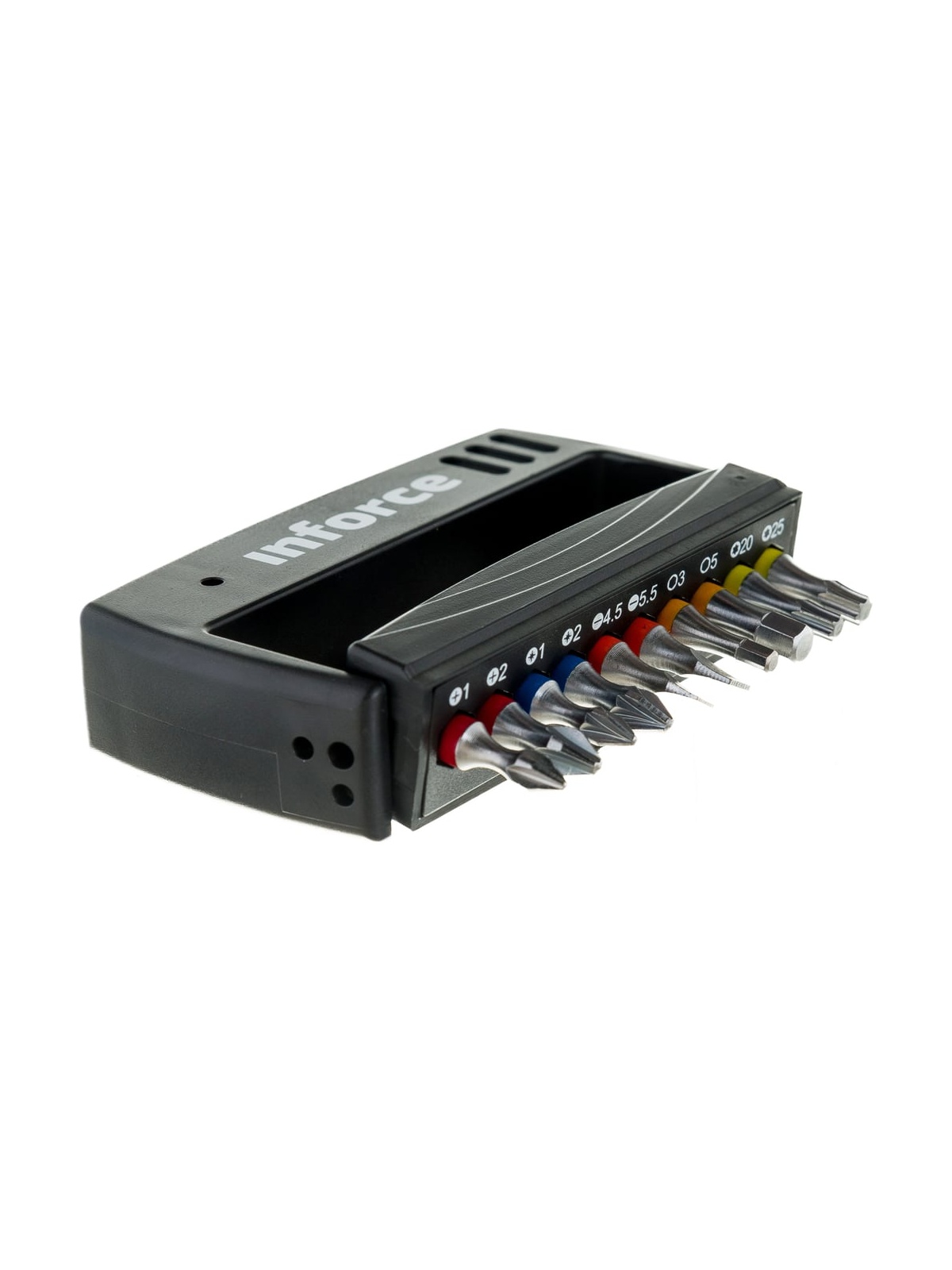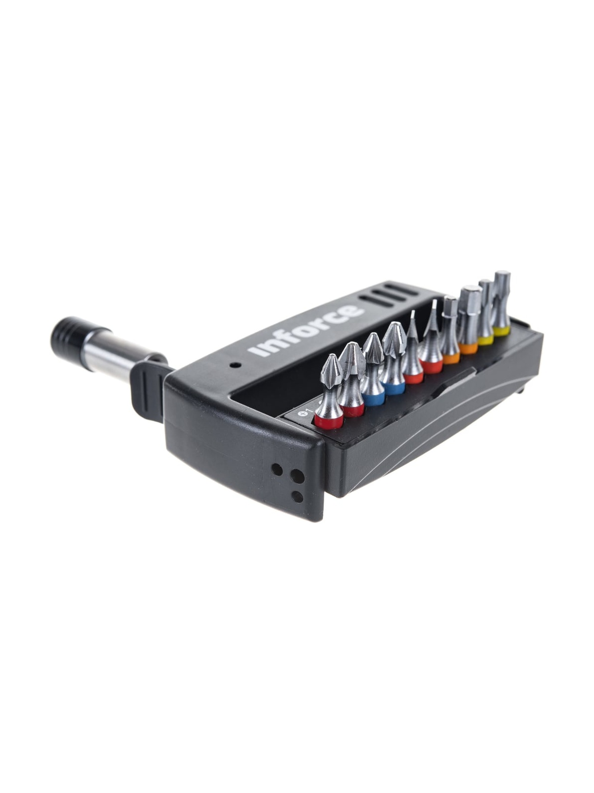 Набор бит с держателем 11 предметов Inforce 11-01-285 применяется для монтажа/демонтажа крепежных элементов с помощью шуруповерта или универсальной отвертки под биты. Магнитный адаптер обеспечивает надежное крепление оснастки в посадочном гнезде. Набор поставляется в удобном для хранения и транспортировки боксе. Все биты имеют цветную маркировку.