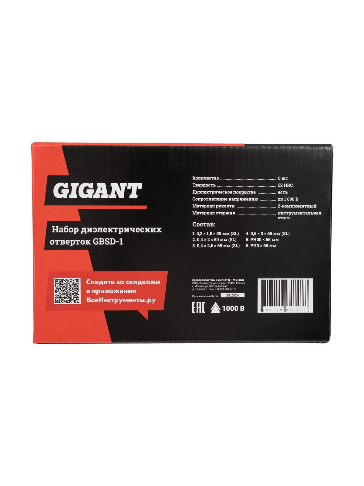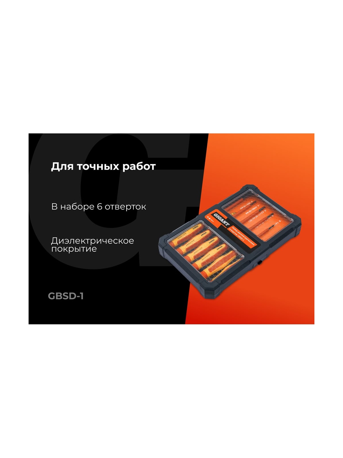 Набор диэлектрических отверток Gigant GBSD-1 предназначен для монтажных и демонтажных работ под напряжением. Инструменты отличаются долгим сроком службы.