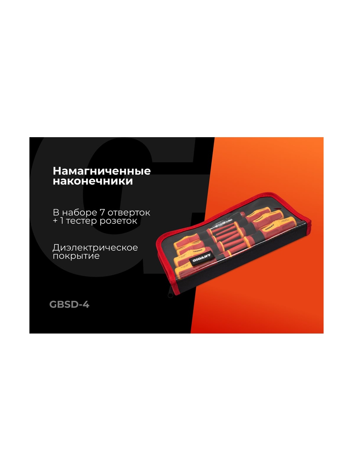Набор диэлектрических отверток Gigant GBSD-4 применяется для проведения монтажных работ под напряжением до 1000 В. Стержни инструментов выполнены из прочной хром-ванадиевой стали. Отвёртки оснащены прямыми рукоятками с мягкими прорезиненными вставками, которые не скользят в руке. Набор укомплектован сумкой, которая удобная для переноски инструмента.