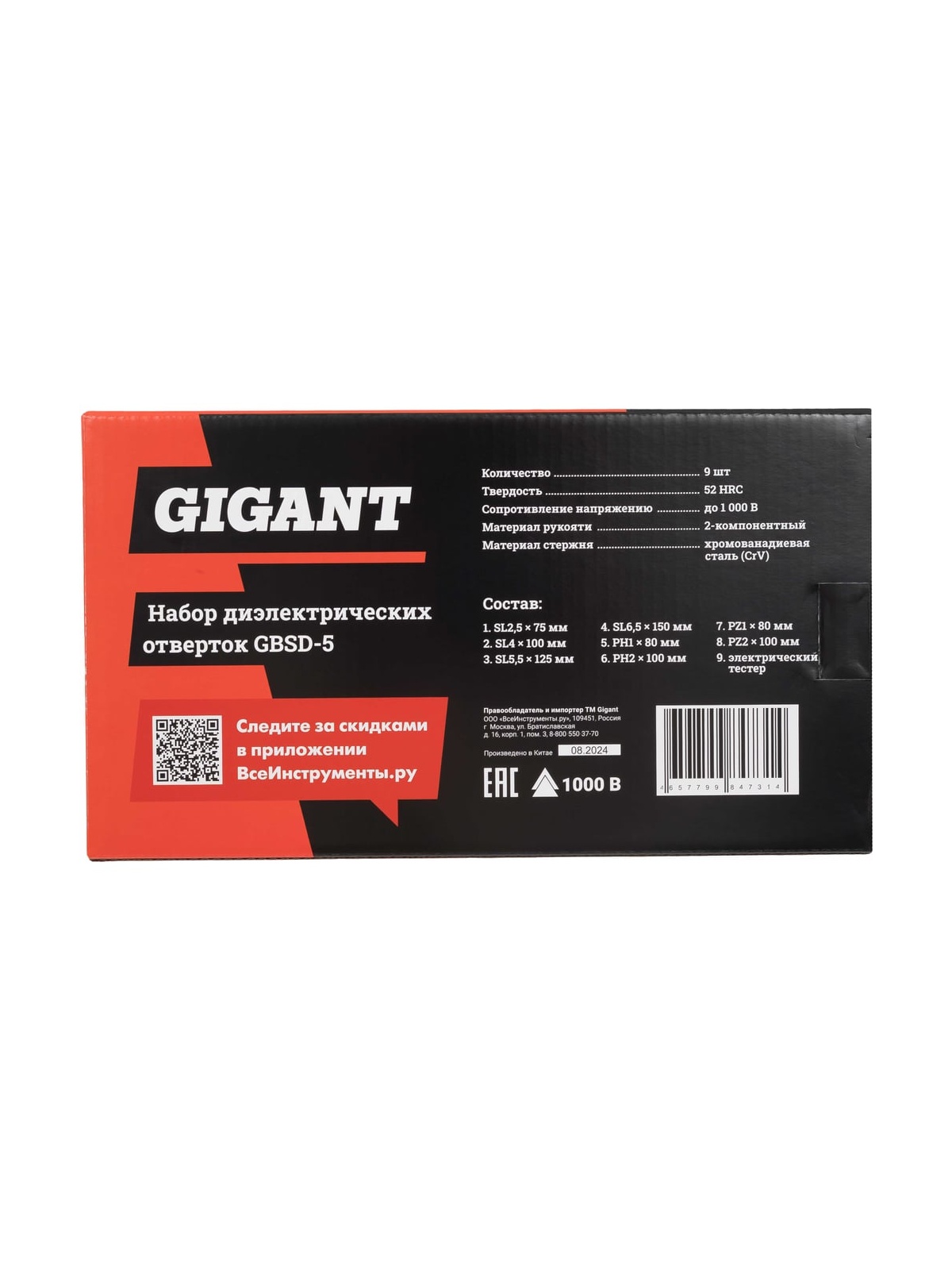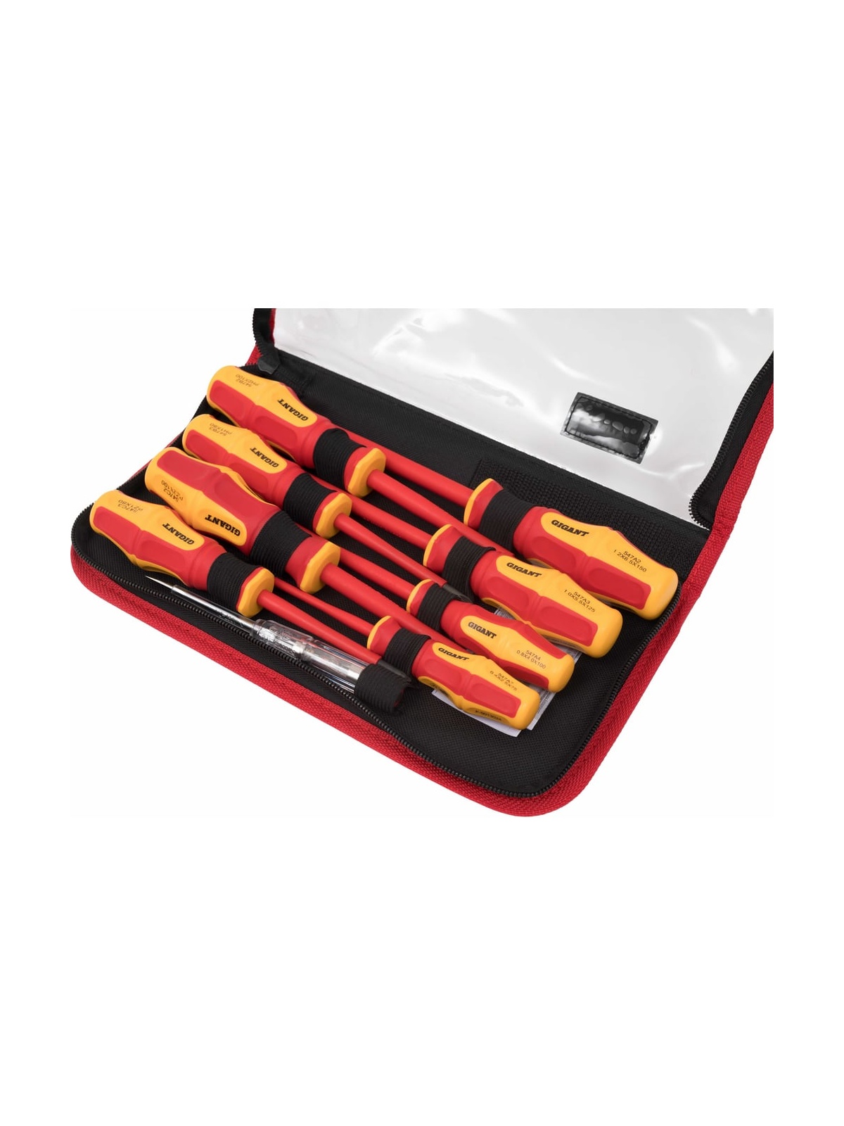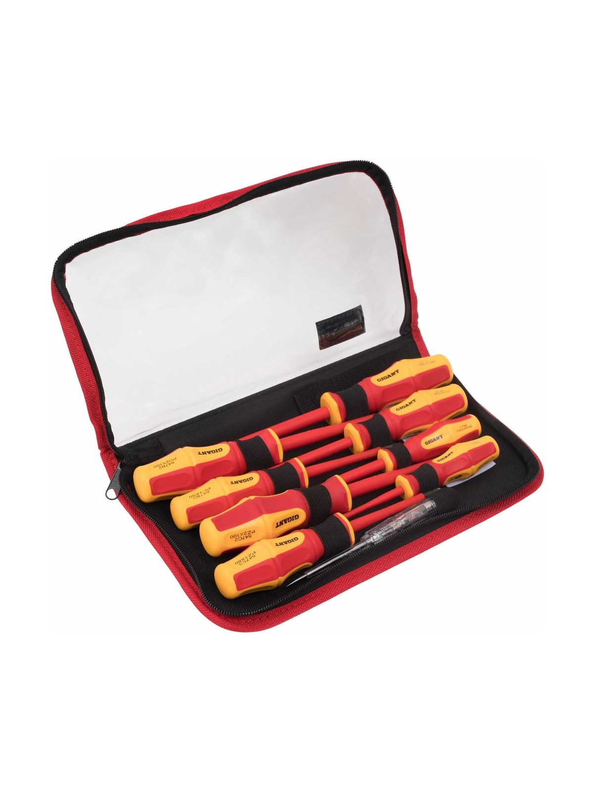 Набор диэлектрических отверток Gigant GBSD-5 рассчитан на работу с мелким и крупным крепежом с пазом типа Philips и шлицевым. Рукоятки выполнены из двухкомпонентного материала и отлично подходят для работ под напряжением до 1000 В. Есть отвертка-индикатор, которая помогает определить наличие тока в розетке или проводах.