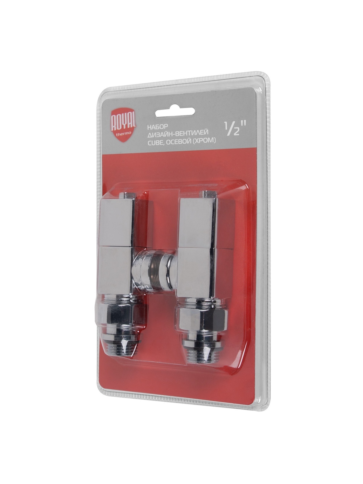 Набор дизайн-вентилей CUBE, осевой (хром) 1/2".