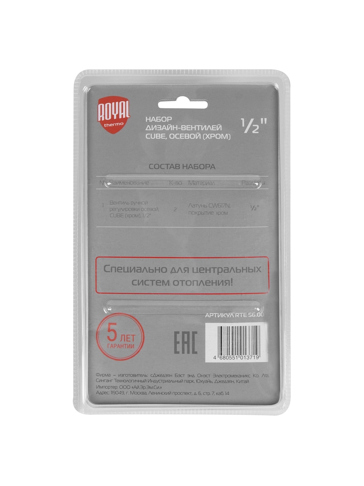 Набор дизайн-вентилей CUBE, осевой (хром) 1/2"
