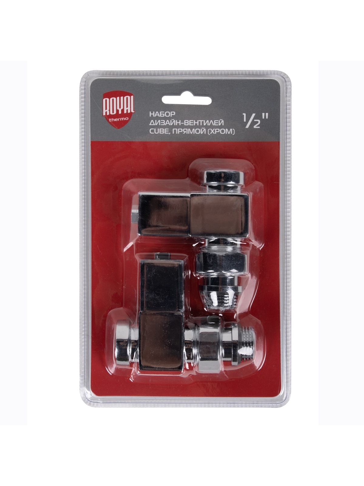 Набор дизайн-вентилей Royal Thermo Cube производится в 3 вариациях: прямой, угловой и осевой