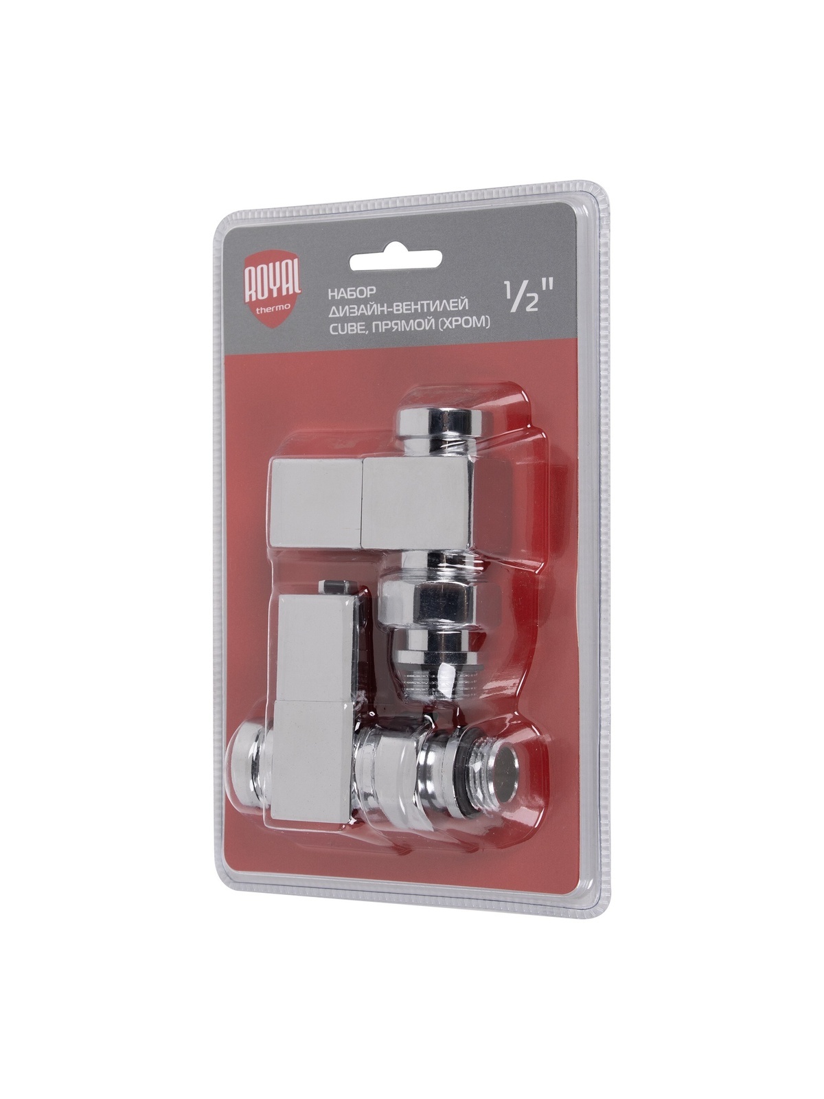 Набор дизайн-вентилей CUBE, прямой (хром) 1/2".