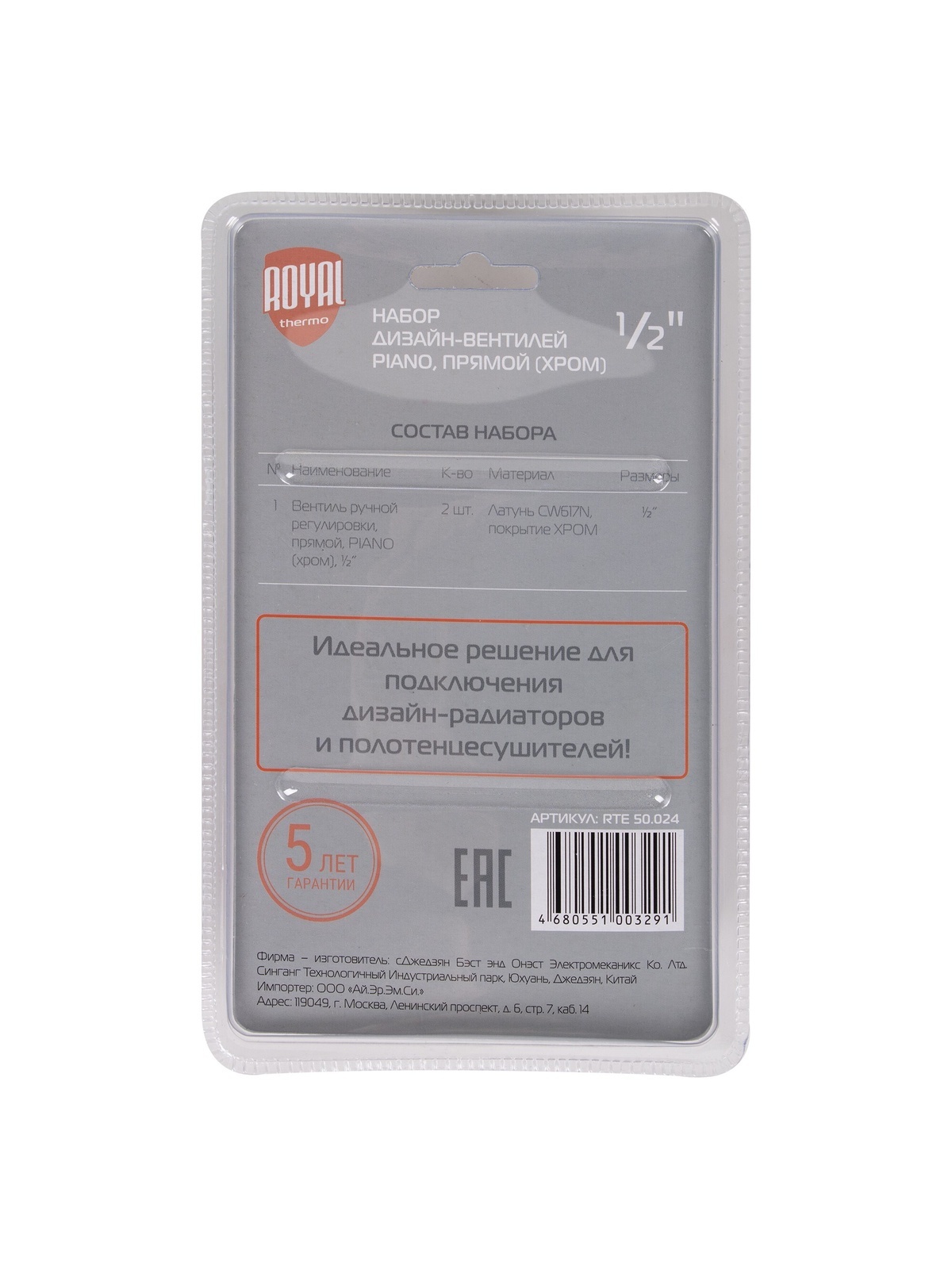 Набор дизайн-вентилей PIANO, прямой (хром) 1/2".