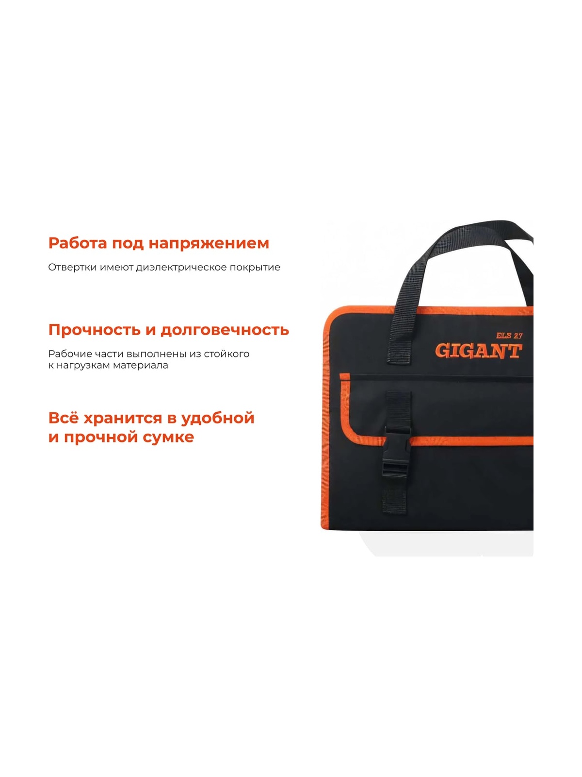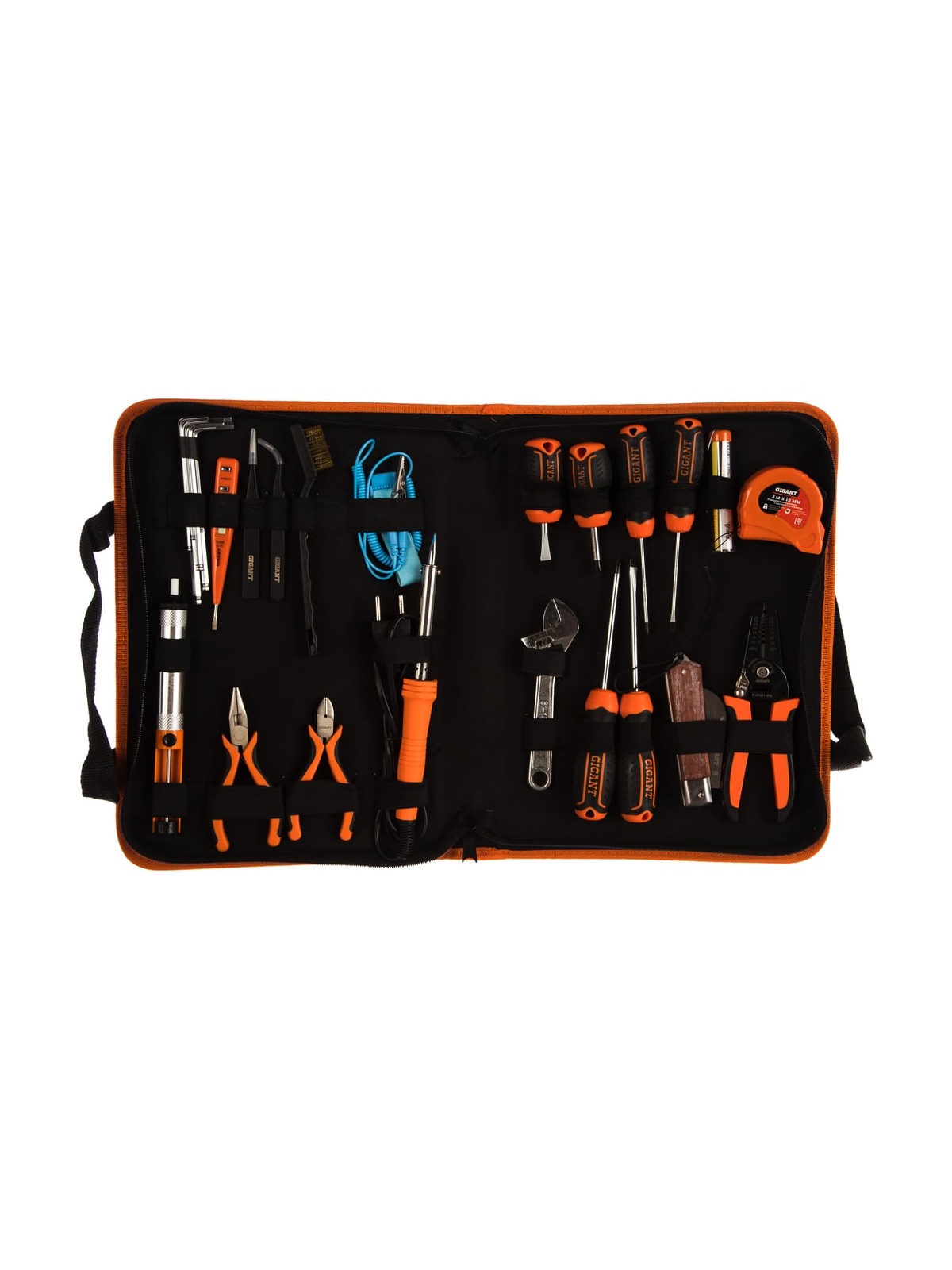 Набор электрика Gigant 27 предметов ELS27 представляет собой комплект инструментов, которые могут использоваться для спайки деталей, ремонта изделий под напряжением и т.д. Подходит для профессионального использования. Рабочие части выполнены из прочного и стойкого к нагрузкам материала. Набор поставляется в сумке для удобного хранения и транспортировки. Твердость стали соответствует 52 HRC.