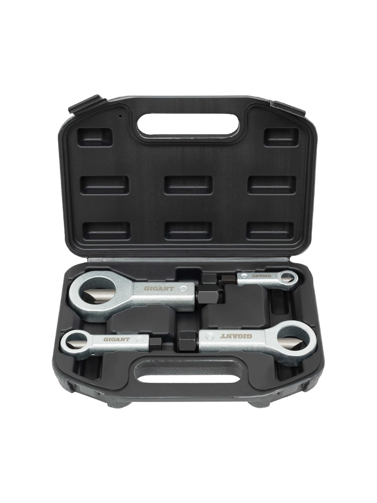 Набор гайколомов Gigant 9-27мм 4 предмета GSB-4 применяется для разрубания изношенных гаек. Пластиковый кейс обеспечивает удобство хранения приспособлений.