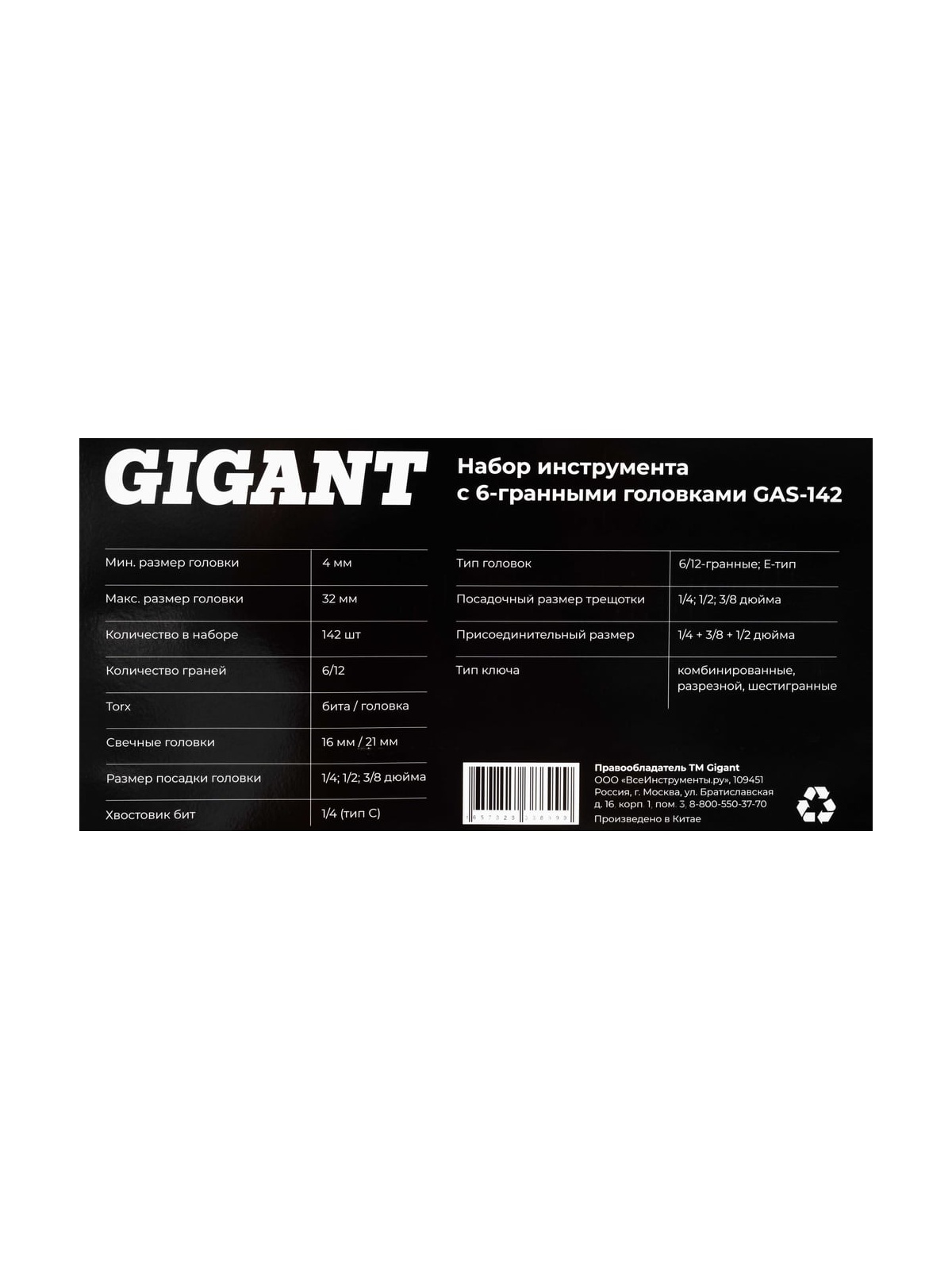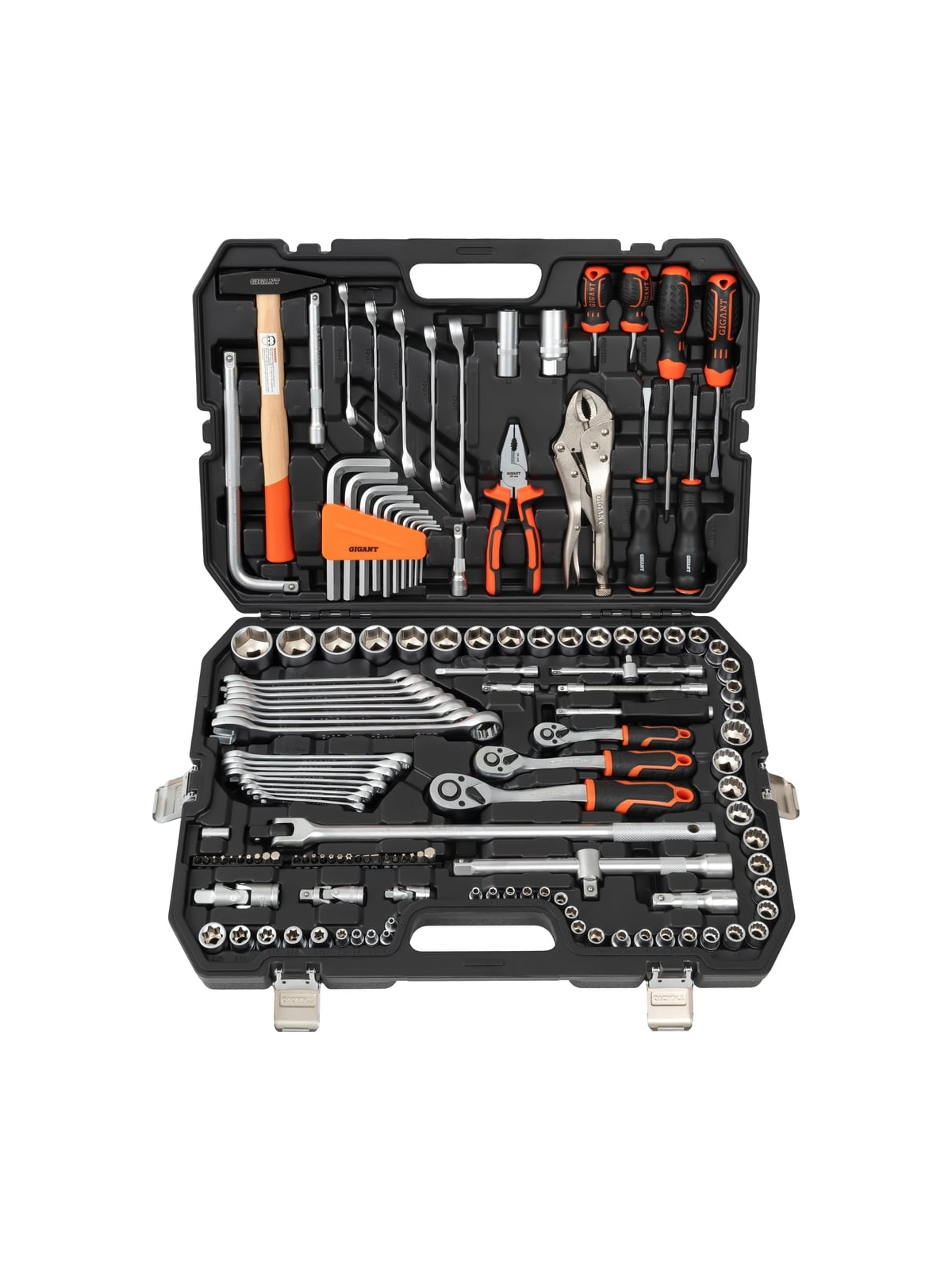 Набор инструмента Gigant 1/2, 1/4 и 3/8 дюйма с 6-гранными головками, 142 предмета GAS-142 - это универсальный комплект, идеально подходящий для ремонта на СТО, в мастерских, на производстве, в гараже, в дороге, на даче и дома. Благодаря высококачественным материалам и эргономичному дизайну, инструменты обеспечивают надежность и долговечность в использовании. Набор включает посадочные квадраты 1/4", 3/8" и 1/2", а также различные типы головок, включая шестигранные, E-профиль и короткие. Удобный пластиковый кейс обеспечивает легкость хранения и транспортировки, что позволяет всегда иметь все необходимые инструменты под рукой.