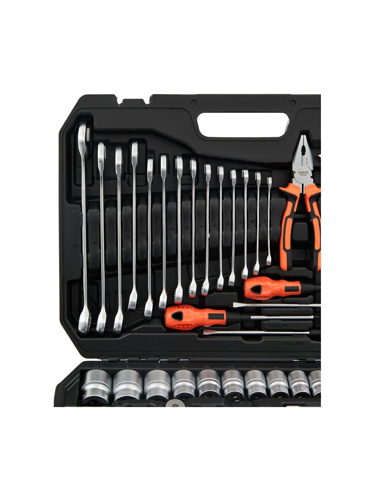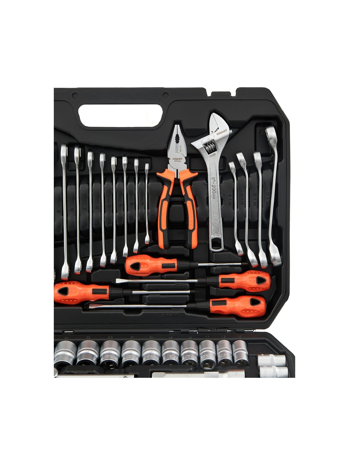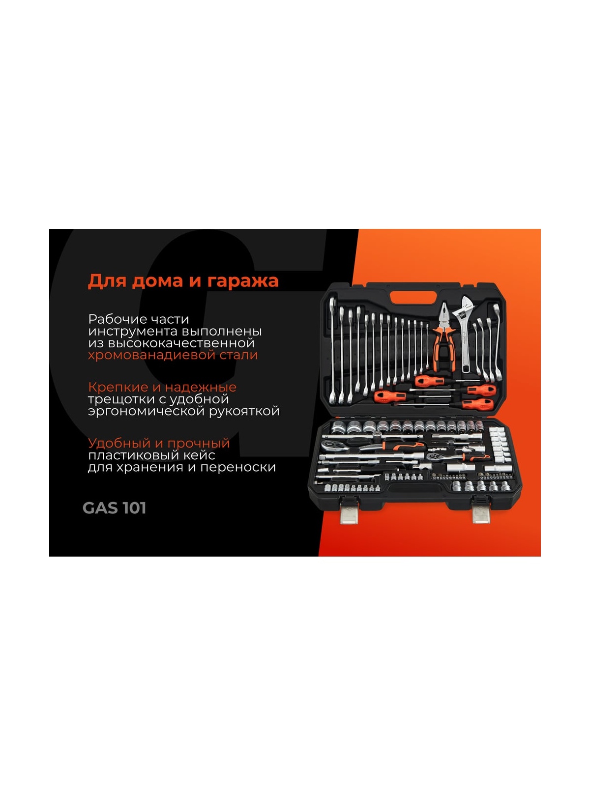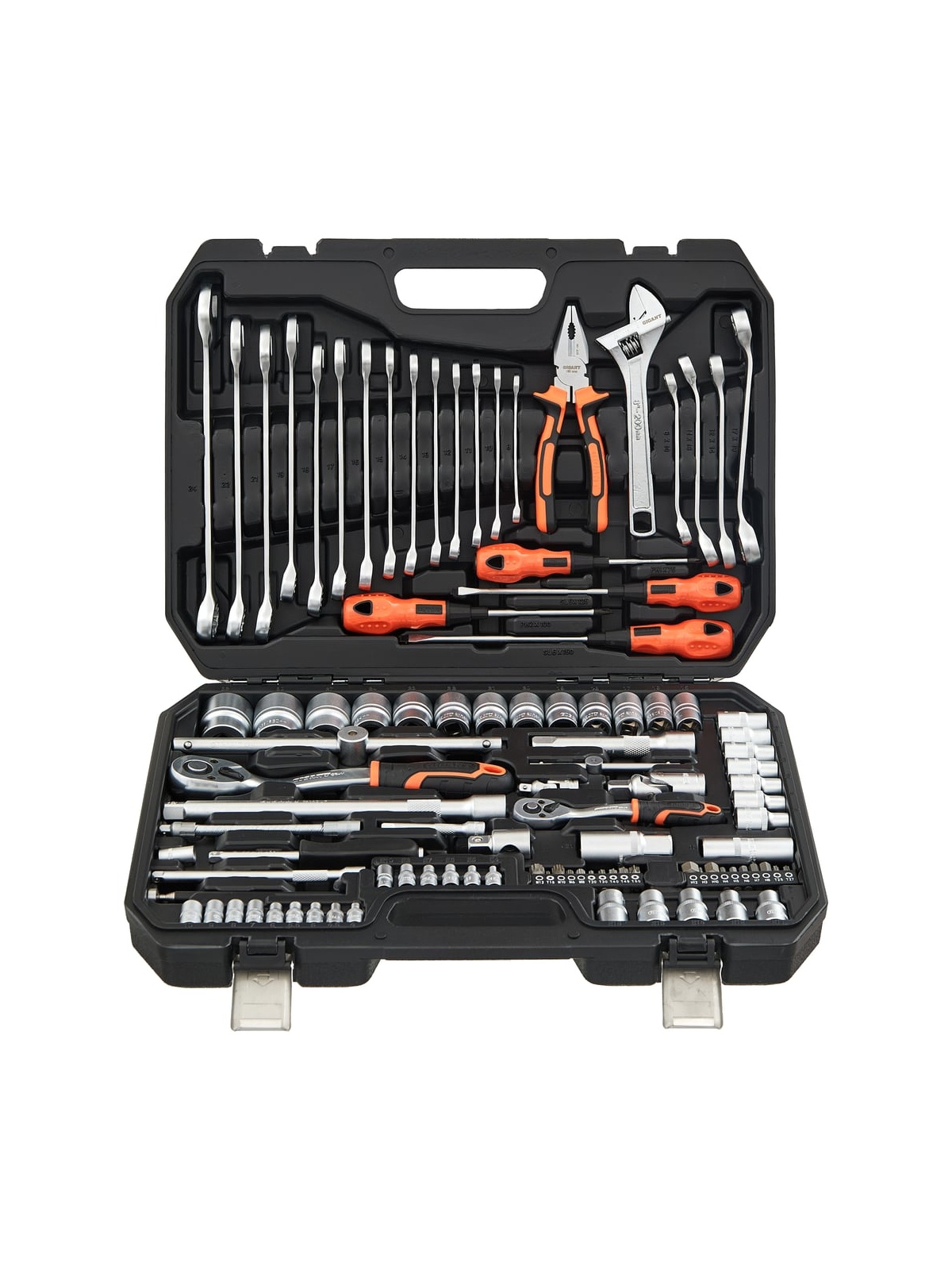 Набор инструментов 101 предмет Gigant GAS 101 представляет собой комплект ручного автоинструмента для монтажа и демонтажа различных деталей. Данный набор подойдёт для использования в автомастерских и на станциях технического обслуживания. Шарнирно-губцевые инструменты в наборе изготовлены из хром-ванадиевой стали, отличаются прочностью и долгим сроком службы. Конструкция трещотки позволяет работать в ограниченном пространстве. Набор поставляется в кейсе из ударопрочного пластика. Продукция представлена профессиональными и бытовыми инструментами, имеет доступную цену и высокое качество. При изготовлении товаров Gigant используется современное оборудование и прочные материалы. Производство осуществляется на современных предприятиях России и Азии. Тестирование товаров осуществляется в два этапа, каждая партия инструментов проходит проверку на соответствие стандартам и заявленным техническим характеристикам. Это является залогом качества и надежности готового продукта. Продукция представлена широкой линейкой инструментов. У нас можно приобрести ручной инструмент, строительный, садовый, сантехнический, климатический, крепежный, автогаражный, а также станки, расходные материалы и многое другое.