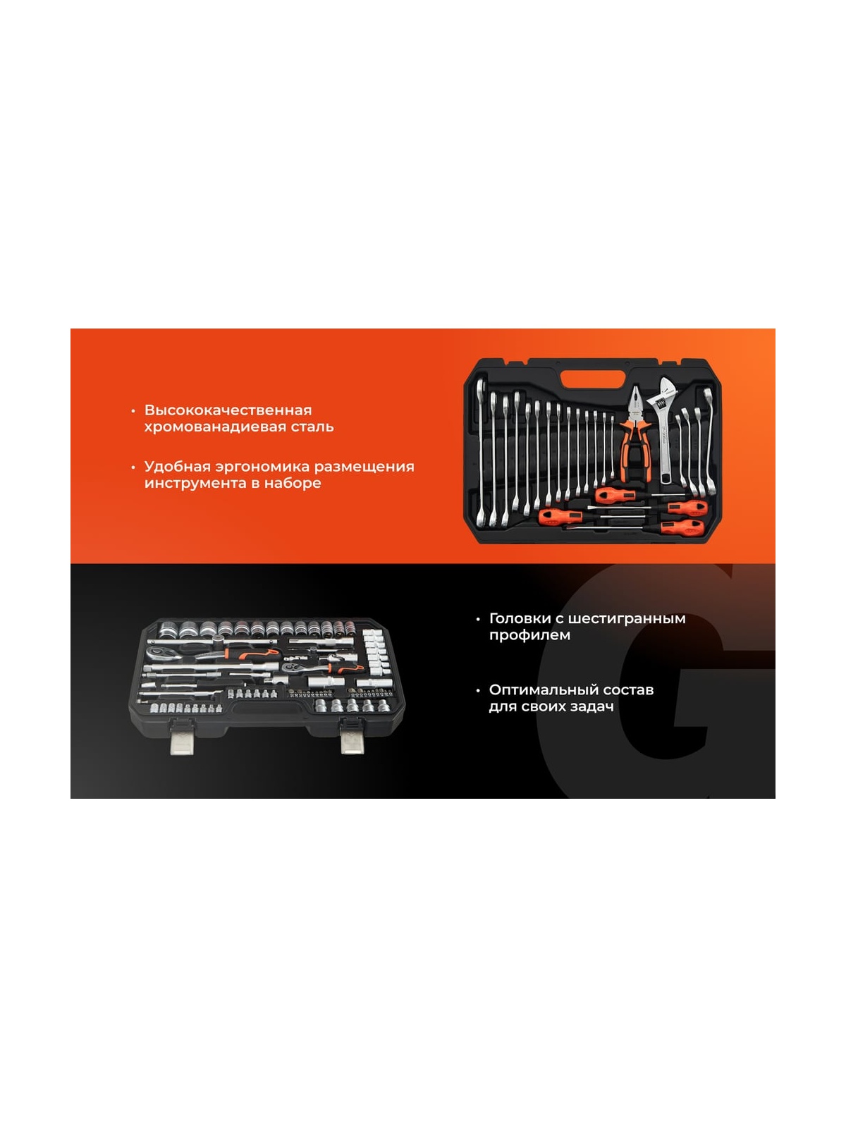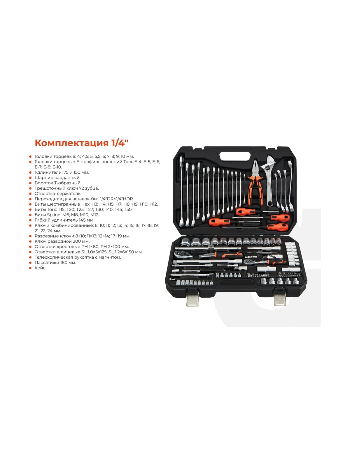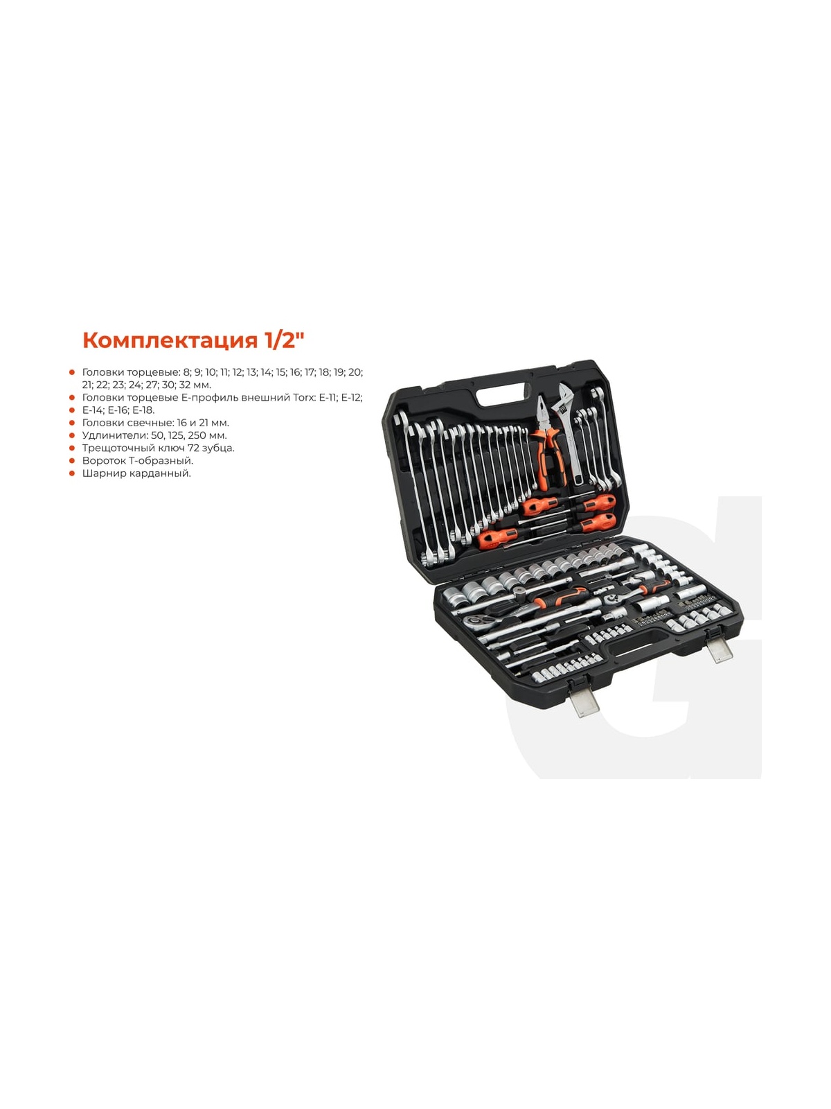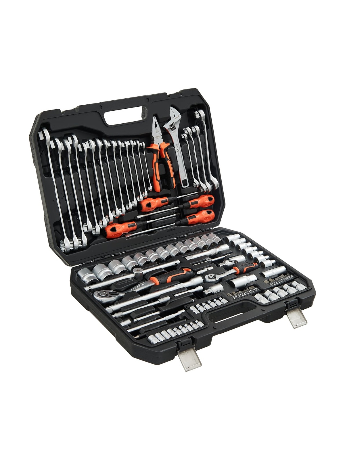 Набор инструментов 101 предмет Gigant GAS 101 представляет собой комплект ручного автоинструмента для монтажа и демонтажа различных деталей. Данный набор подойдёт для использования в автомастерских и на станциях технического обслуживания. Шарнирно-губцевые инструменты в наборе изготовлены из хром-ванадиевой стали, отличаются прочностью и долгим сроком службы. Конструкция трещотки позволяет работать в ограниченном пространстве. Набор поставляется в кейсе из ударопрочного пластика. Продукция представлена профессиональными и бытовыми инструментами, имеет доступную цену и высокое качество. При изготовлении товаров Gigant используется современное оборудование и прочные материалы. Производство осуществляется на современных предприятиях России и Азии. Тестирование товаров осуществляется в два этапа, каждая партия инструментов проходит проверку на соответствие стандартам и заявленным техническим характеристикам. Это является залогом качества и надежности готового продукта. Продукция представлена широкой линейкой инструментов. У нас можно приобрести ручной инструмент, строительный, садовый, сантехнический, климатический, крепежный, автогаражный, а также станки, расходные материалы и многое другое.