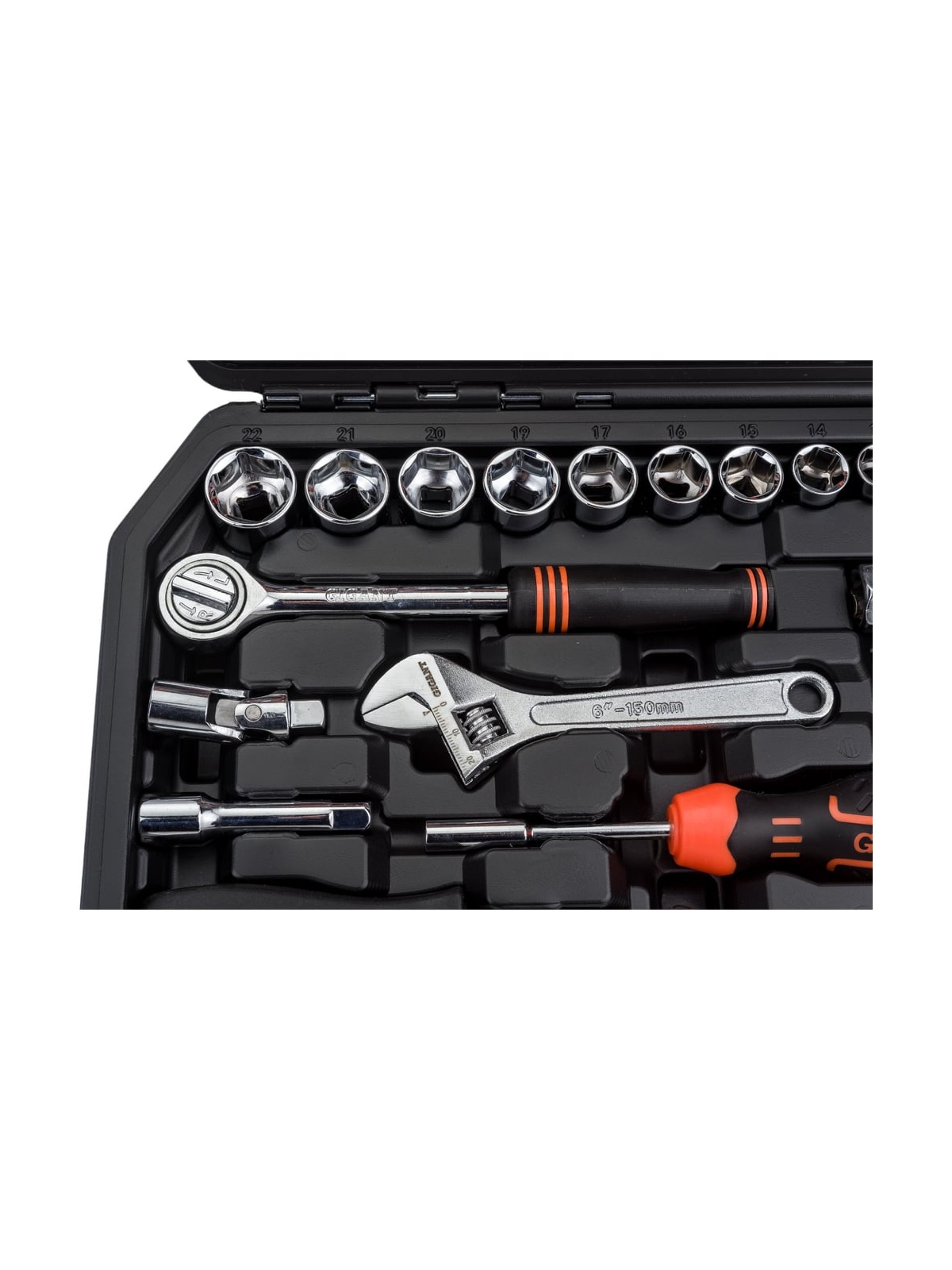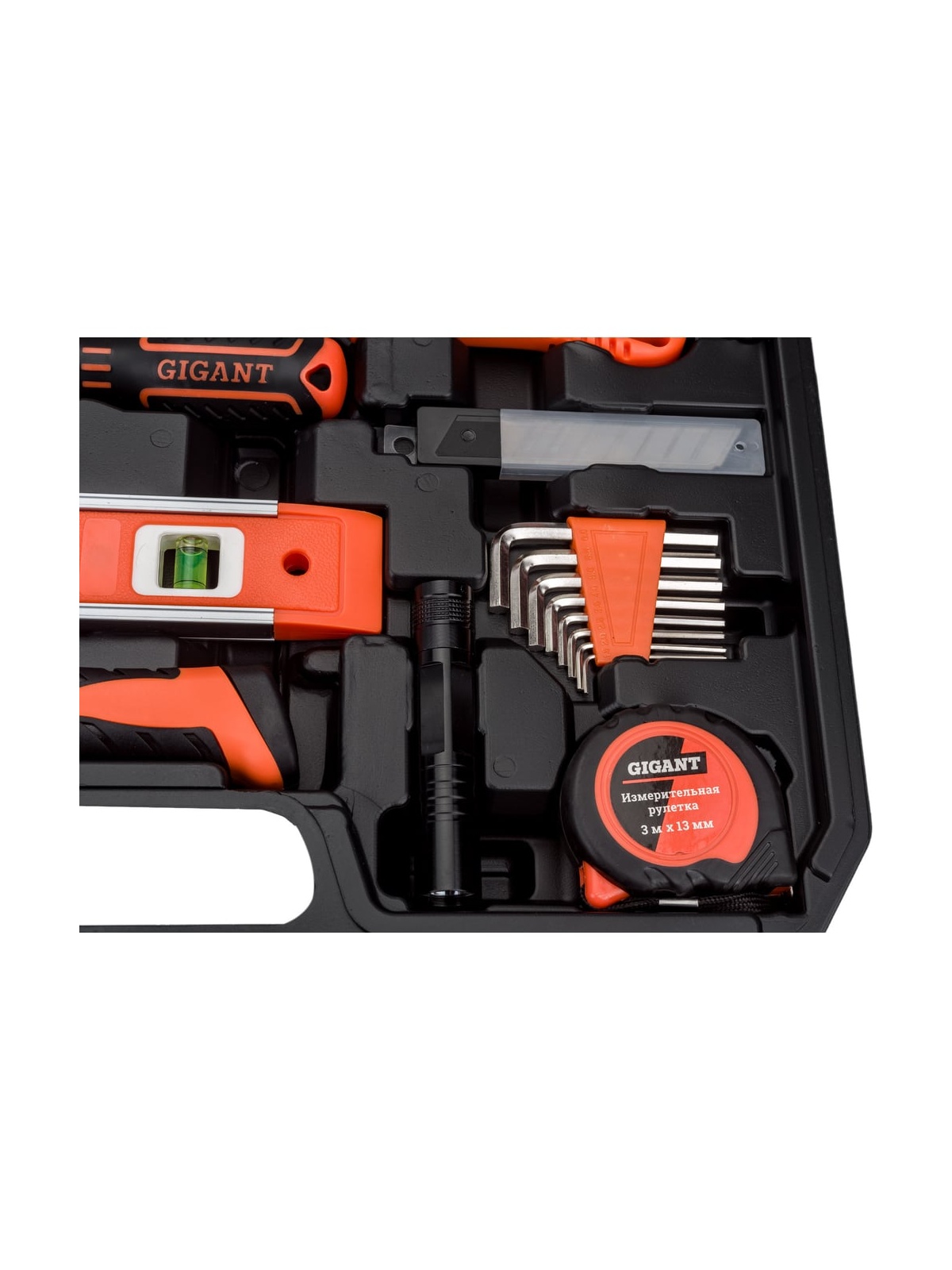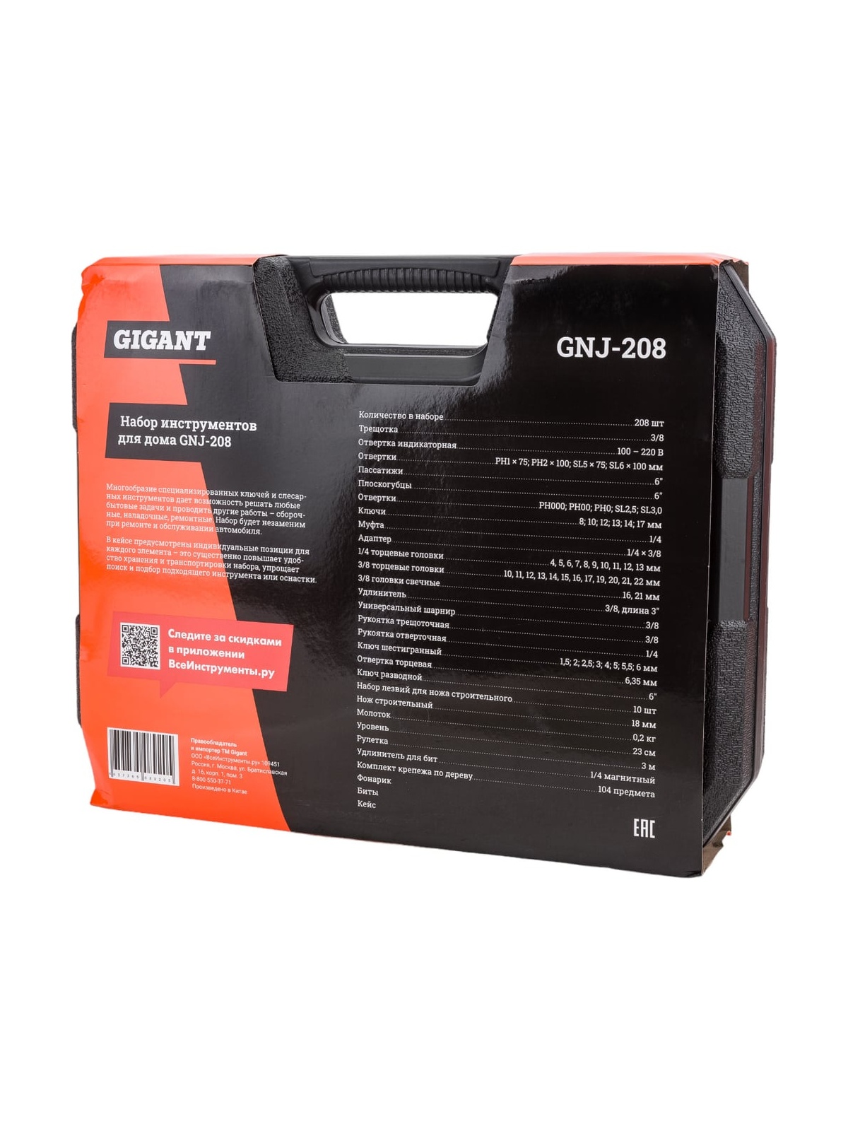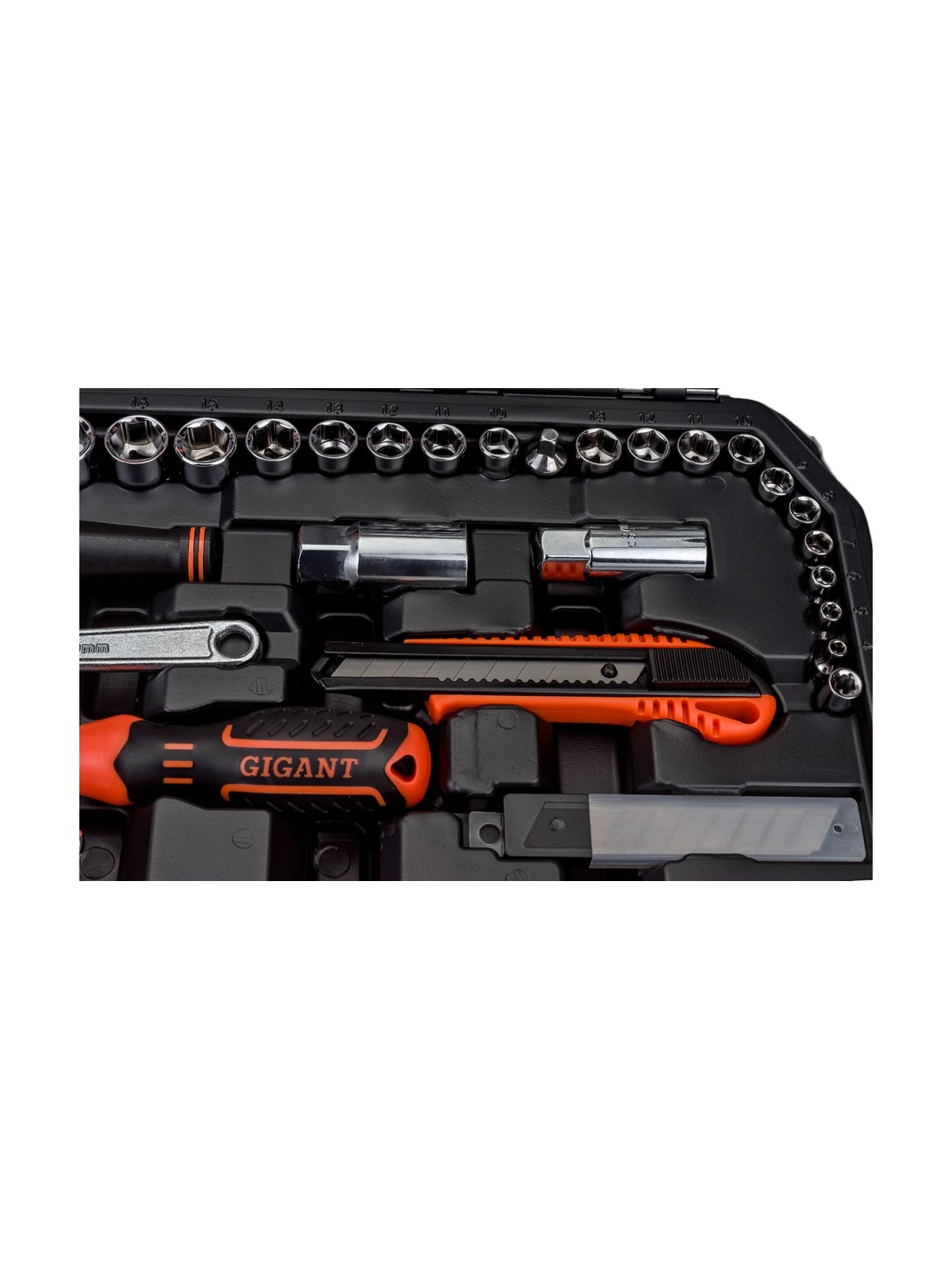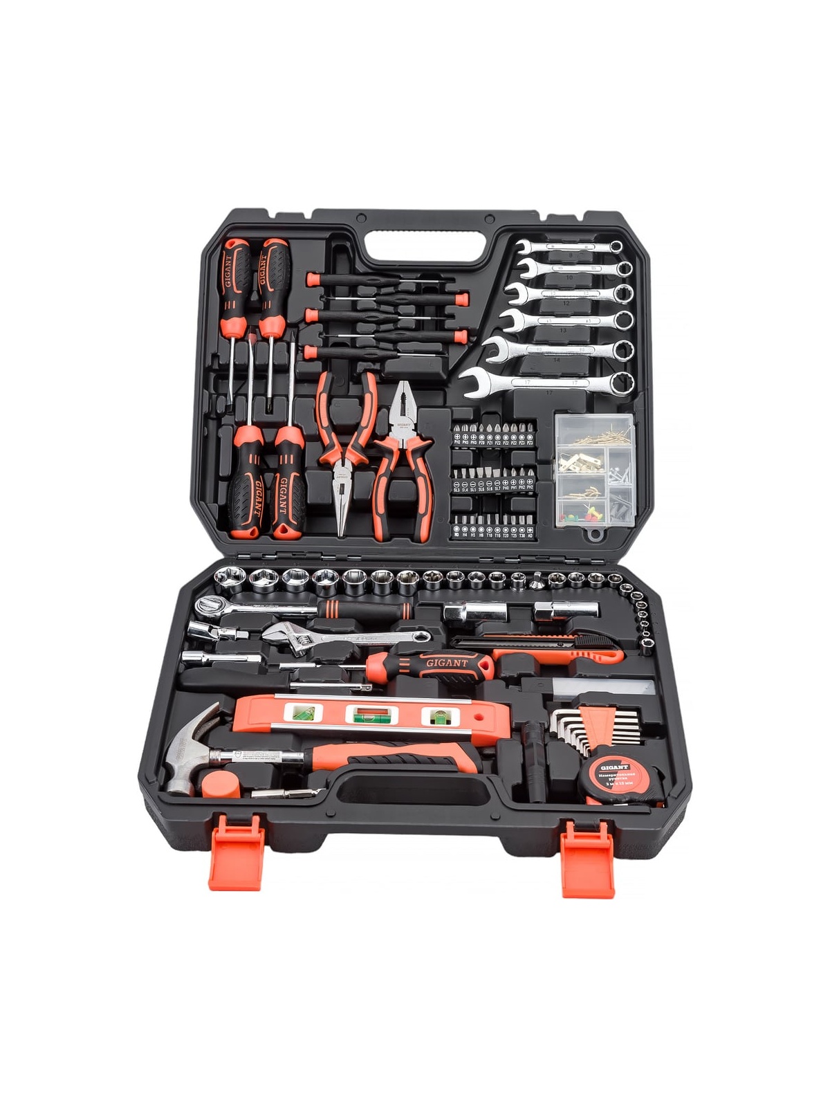 Набор инструментов для дома Gigant GNJ-208 содержит многообразие специализированных ключей и слесарных инструментов, что дает возможность решать любые бытовые задачи и проводить другие работы – сборочные, наладочные, ремонтные. Набор будет незаменим при ремонте и обслуживании автомобиля. В кейсе предусмотрены индивидуальные позиции для каждого элемента – это существенно повышает удобство хранения и транспортировки набора, упрощает поиск и подбор подходящего инструмента или оснастки.