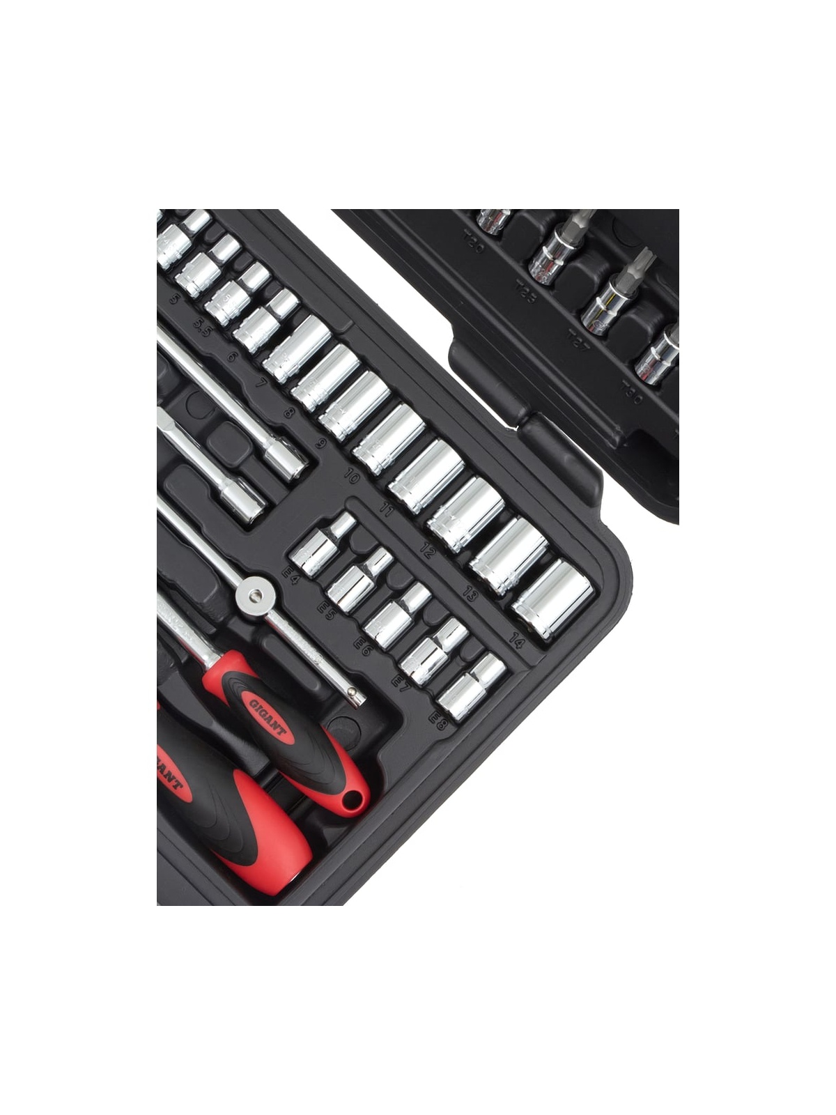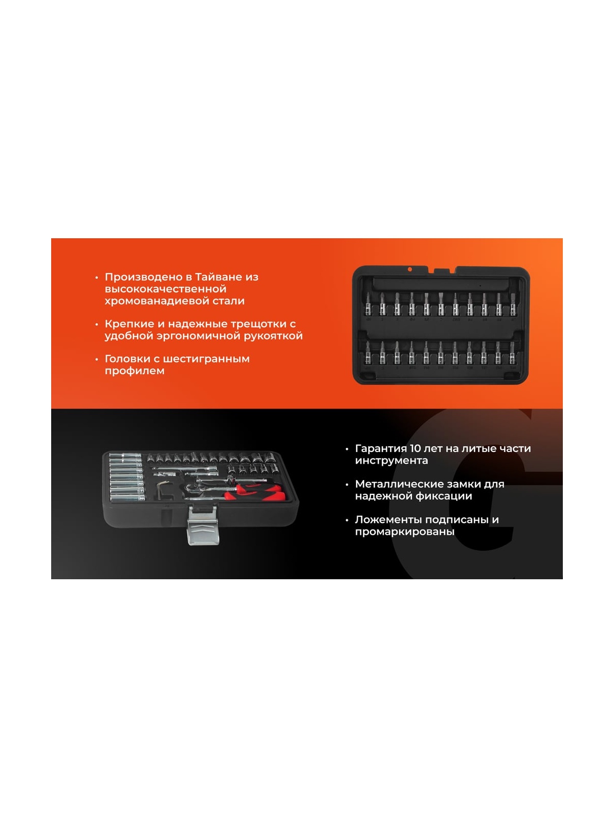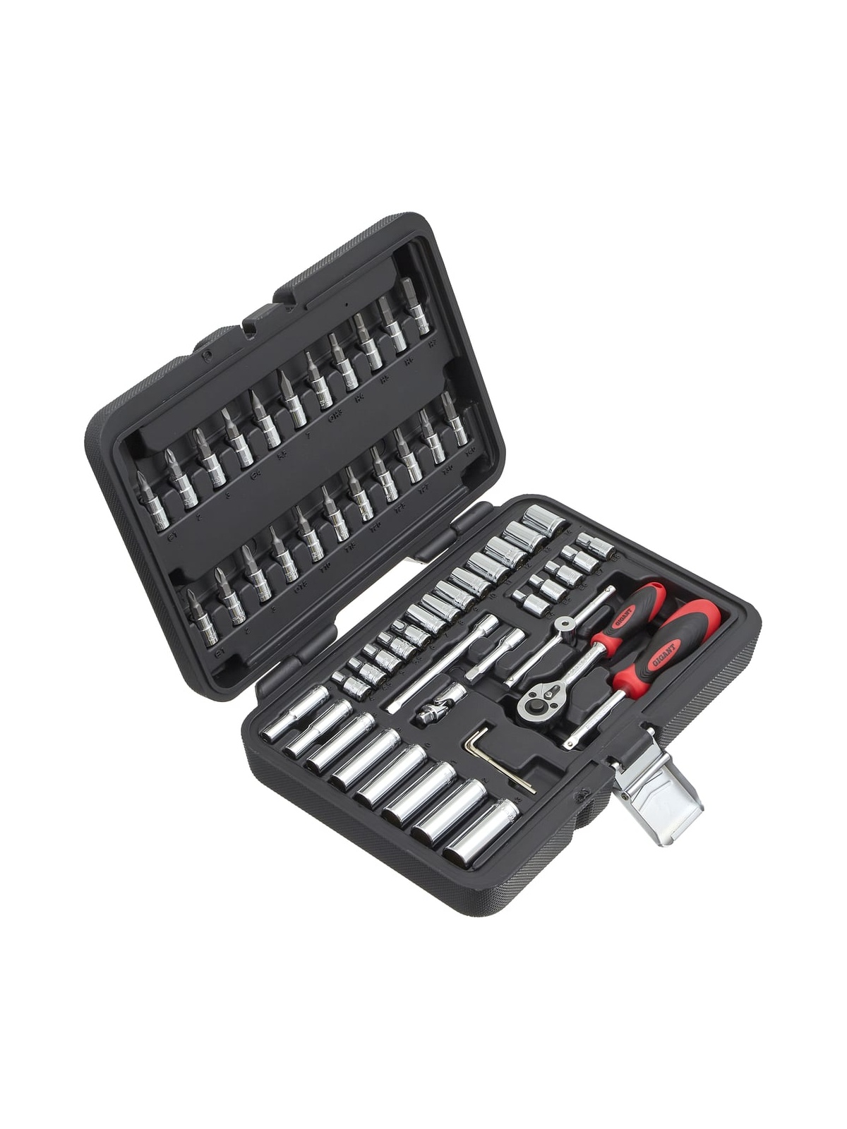 Набор инструментов Gigant Professional 1/4" 57 предметов GPS 57 подходит для проведения монтажных, демонтажных, ремонтных работ. Применяется в автосервисах, мастерских, на станциях технического обслуживания. Комплект включает в себя головки, насадки, ключи, отвертки и прочие универсальные инструменты. Предназначен для профессионального использования. Набор поставляется в компактном и стильном кейсе для удобного хранения и транспортировки. Все модели изготовлены из высококачественной стали, что придает им особую прочность и обеспечивает долгий срок службы. Рукоятки инструментов обеспечивают комфорт во время работы, не утомляют и не натирают руку. Продукция представлена профессиональными и бытовыми инструментами, имеет доступную цену и высокое качество. При изготовлении товаров Gigant используется современное оборудование и прочные материалы. Производство осуществляется на современных предприятиях России и Азии. Тестирование товаров осуществляется в два этапа, каждая партия инструментов проходит проверку на соответствие стандартам и заявленным техническим характеристикам. Это является залогом качества и надежности готового продукта. Продукция представлена широкой линейкой инструментов. У нас можно приобрести ручной инструмент, строительный, садовый, сантехнический, климатический, крепежный, автогаражный, а также станки, расходные материалы и многое другое.