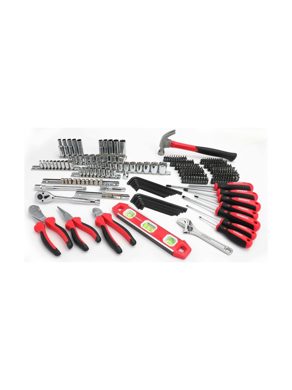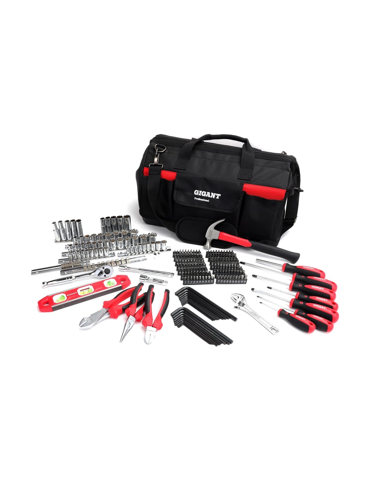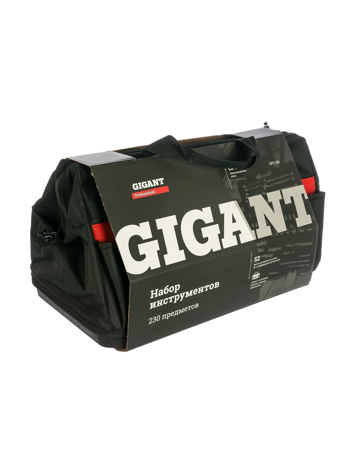 Набор инструментов Gigant Professional 230 предметов в сумке GPS 230 подходит для эксплуатации в мастерских, автосервисах и на станциях технического обслуживания. Относится к товарам профессионального класса. Инструменты пригодятся для проведения ремонтных работ. Комплект включает в себя головки и биты, отвертки, молоток, пассатижи, бокорезы и пр.