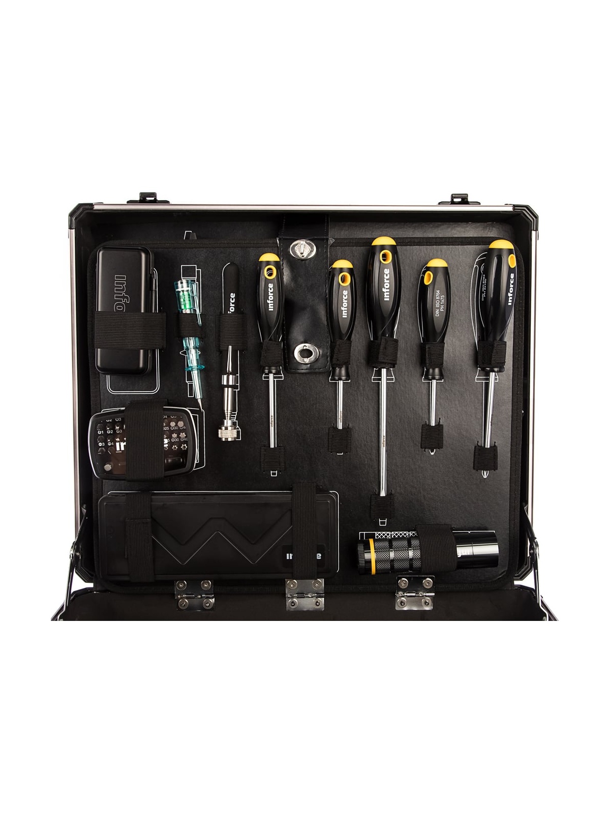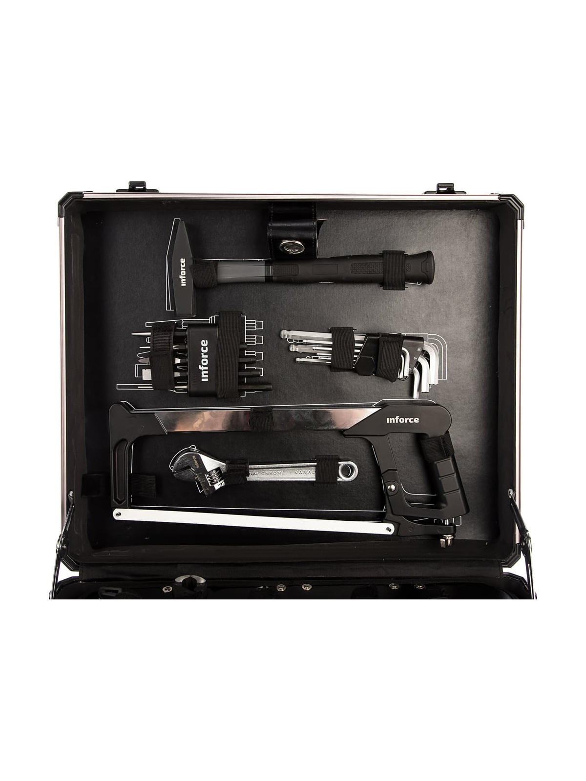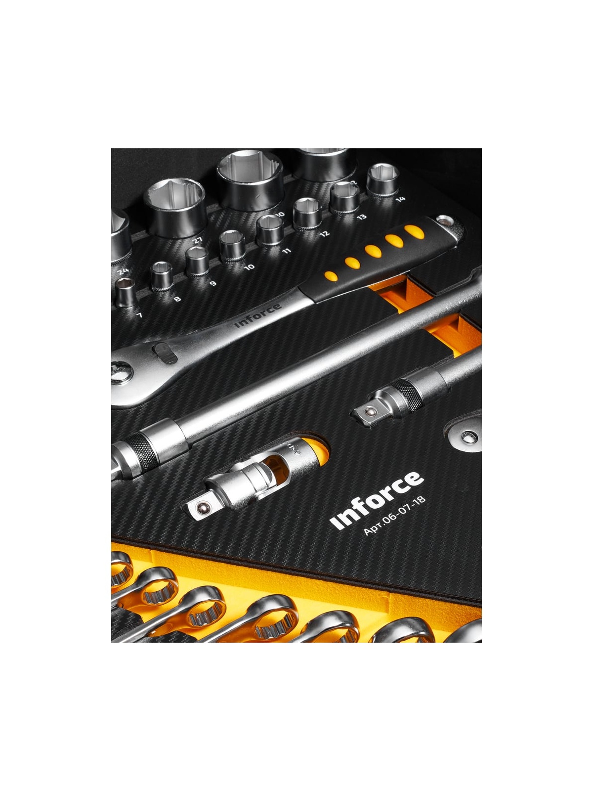 Набор инструментов Inforce 152 предмета 1/2 дюйма и 1/4 дюйма 06-07-18 используется в мастерских и автосервисах для монтажных, демонтажных и ремонтных работ. В комплекте представлены модели профессионального класса. Все инструменты выполнены из прочной стали. Набор поставляется в кейсе для удобного и компактного хранения. Перед использованием рекомендуется произвести 25 циклов вращения трещоточного механизма - для распределения смазки по всей поверхности механизма.